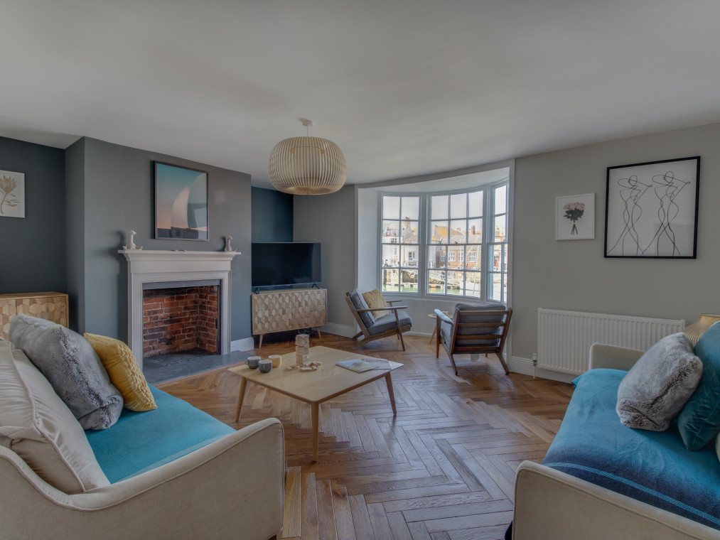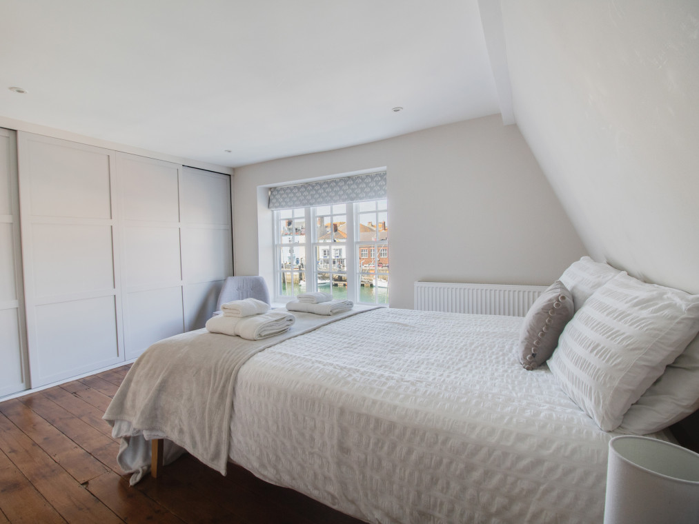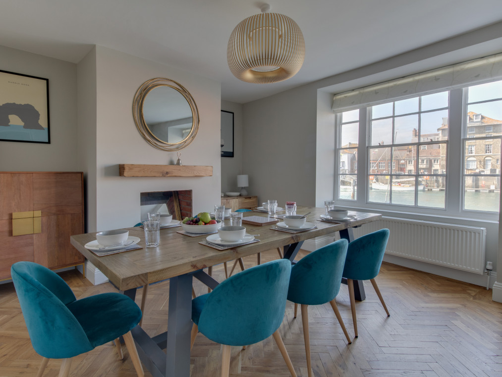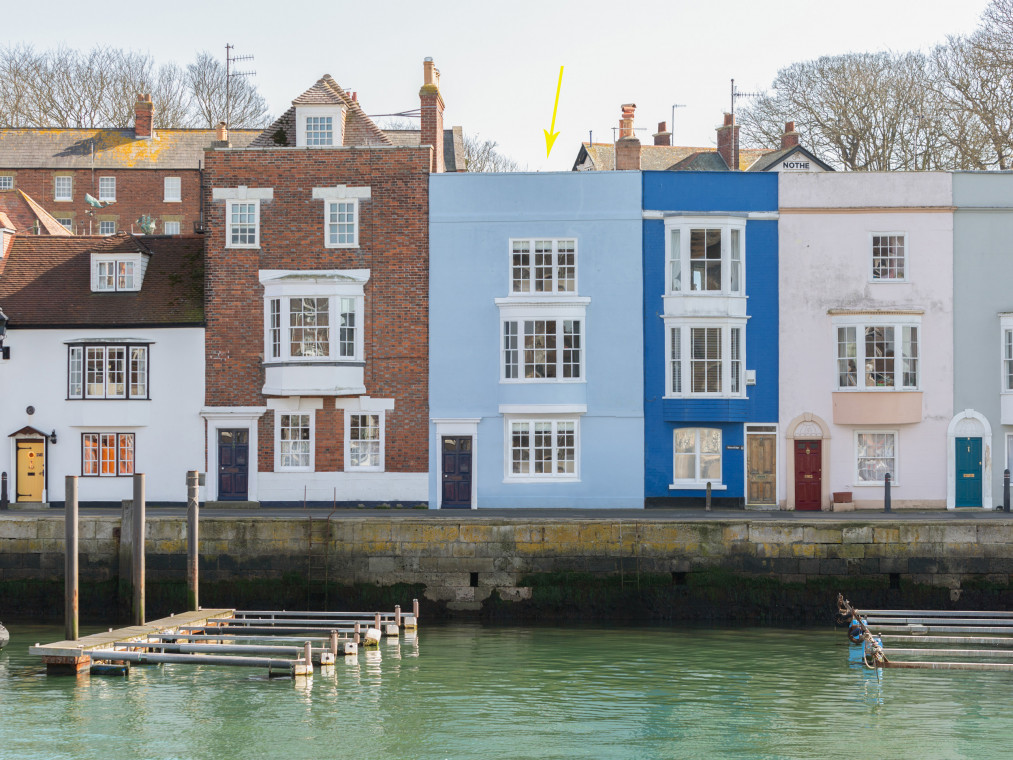 Refurbished throughout, this delightful Grade II listed harbour side house is a real gem! Sitting right on the harbour side in Weymouth’s historic harbour, it offers contemporary accommodation for all the family and incredible harbour views. On the ground floor you will find a fully-equipped kitchen with a great breakfast bar, perfect for keeping the designated chef of the group company as they whip up a delicious meal. The dining room enjoys harbour side views and is an ideal place for everyone to come together and plan your holiday activities. Six steps lead you up to the enclosed rear garden which has a large patio and a raised seating area, the perfect spot for enjoying a relaxing drink in the evening sun. Also on the ground floor is a cosy double bedroom tucked quietly away at the back of the house and a large bright family bathroom with feature slipper style bath and separate shower. On the first floor the large living room enjoys elevated sea and harbour views, perfect for watching the ships go by. The spacious twin bedroom, ideal for younger guests, and at the rear of the house is another double bedroom this time with a lovely Juliette balcony with views over the garden. On the second floor you will find the large master bedroom with breath-taking harbour views and beyond, equipped with a large flat screen TV and shower room en-suite you won’t want to leave! The final bedroom is another double with en-suite shower room and again benefits from being situated at the back of the house. With its harbour side location, you can park up the car and enjoy all the Weymouth has to offer on foot. All the amenities you might desire are within easy walking distance and the beach is a little row boat ferry ride away, this departs 0.2 miles from the front door making a trip to the beach easy! This charming home is perfect for all the family to come and enjoy a seaside holiday. Over three floors. Five bedrooms: 1 x second-floor king size with TV and en-suite shower, basin and WC, 1 x second-floor double with en-suite shower, basin and WC, 1 x twin bedroom, 1 x double, 1 x ground-floor double bedroom. Shower room with walk-in shower, basin and WC. Ground-floor bathroom with shower over bath, basin and WC. Kitchen/diner. First-floor sitting room Amenities for Rental Central heating Gas Range cooker, fridge/freezer, dishwasher, washing machine, TV, WiFi Fuel and power inc. in rent Bed linen and towels inc. in rent Parking for one car Secure rear garden courtyard One small dog welcome No smoking Pub and shop within 0.1 miles