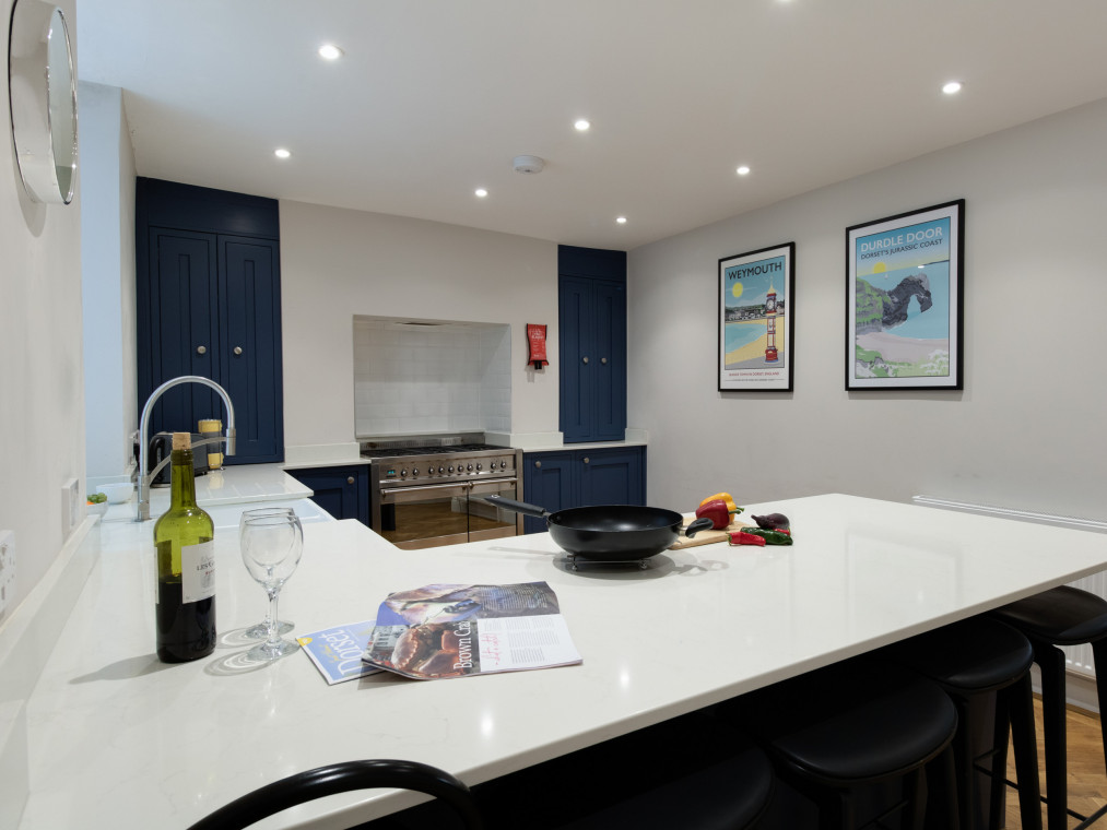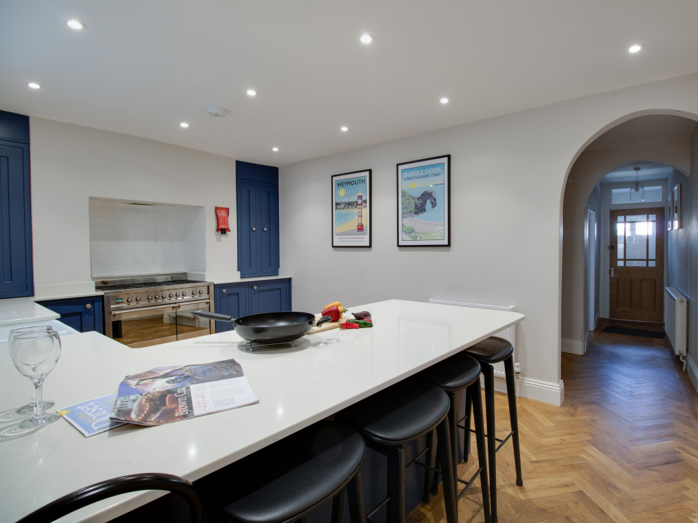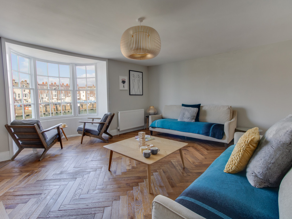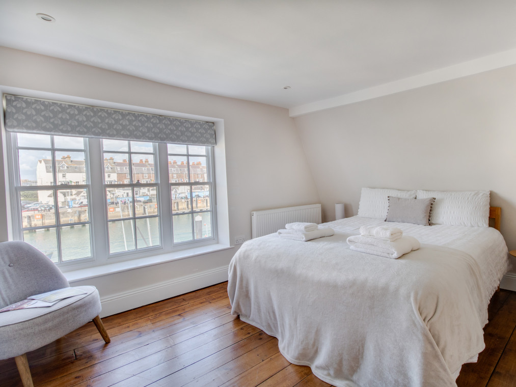 Refurbished throughout, this delightful Grade II listed harbour side house is a real gem! Sitting right on the harbour side in Weymouth’s historic harbour, it offers contemporary accommodation for all the family and incredible harbour views. On the ground floor you will find a fully-equipped kitchen with a great breakfast bar, perfect for keeping the designated chef of the group company as they whip up a delicious meal. The dining room enjoys harbour side views and is an ideal place for everyone to come together and plan your holiday activities. Six steps lead you up to the enclosed rear garden which has a large patio and a raised seating area, the perfect spot for enjoying a relaxing drink in the evening sun. Also on the ground floor is a cosy double bedroom tucked quietly away at the back of the house and a large bright family bathroom with feature slipper style bath and separate shower. On the first floor the large living room enjoys elevated sea and harbour views, perfect for watching the ships go by. The spacious twin bedroom, ideal for younger guests, and at the rear of the house is another double bedroom this time with a lovely Juliette balcony with views over the garden. On the second floor you will find the large master bedroom with breath-taking harbour views and beyond, equipped with a large flat screen TV and shower room en-suite you won’t want to leave! The final bedroom is another double with en-suite shower room and again benefits from being situated at the back of the house. With its harbour side location, you can park up the car and enjoy all the Weymouth has to offer on foot. All the amenities you might desire are within easy walking distance and the beach is a little row boat ferry ride away, this departs 0.2 miles from the front door making a trip to the beach easy! This charming home is perfect for all the family to come and enjoy a seaside holiday. Over three floors. Five bedrooms: 1 x second-floor king size with TV and en-suite shower, basin and WC, 1 x second-floor double with en-suite shower, basin and WC, 1 x twin bedroom, 1 x double, 1 x ground-floor double bedroom. Shower room with walk-in shower, basin and WC. Ground-floor bathroom with shower over bath, basin and WC. Kitchen/diner. First-floor sitting room Amenities for Rental Central heating Gas Range cooker, fridge/freezer, dishwasher, washing machine, TV, WiFi Fuel and power inc. in rent Bed linen and towels inc. in rent Parking for one car Secure rear garden courtyard One small dog welcome No smoking Pub and shop within 0.1 miles