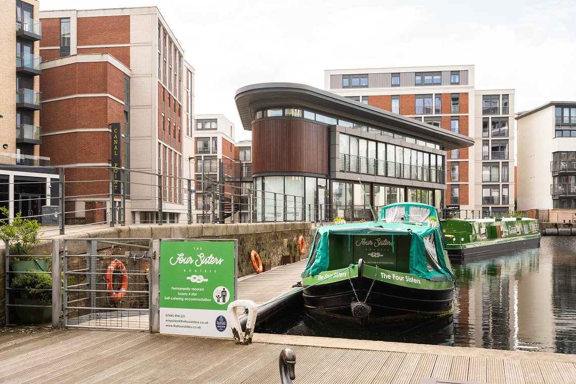 Read MoreThe Four Sisters Boatel is a luxury, four-star, self-catering, wide-beam barge located in the very heart of Edinburgh city centre and has been awarded 4 stars by the Scottish Tourist Board. She is a purpose built, permanently moored, static wide-beam houseboat, so don’t worry if you haven’t got your sea legs, there are no currents or tides and sea/canal sickness is not an issue. A massive 55' by 10' 6" with 6' 4" of headroom, she can sleep up to 4 adults and 2 children under 10 years comfortably in 2 double cabin rooms and a set of kids recessed bunk beds. A double bed-settee is also available in the lounge area to accommodate a further 2 adults for larger groups. The Four Sisters is fully equipped with modern galley kitchen, comfortable lounge area with flat screen TV and smart streaming technology with access to 1000's of movies. There is also a compact, modern shower room with shower, toilet and was-hand basin and a weatherproof outdoor seating area or enjoying evening sunsets over the Union Canal. As well as hiring the boat for unique stays, The Four Sisters Boatel can also be used to host your special events and with our bespoke service, we will make sure it is an event your guests will not forget. We are the only floating boatel company in Edinburgh offering four star luxury self-catering, pet-friendly accommodation. Permanently moored in Lochrin Basin just a 10-minute walk from Edinburgh’s historic Old Town and vibrant New Town. The Four Sisters Boatel offers unique, luxury pet-friendly accommodation, so bring your furry family member with you to explore our beautiful city of Edinburgh. There are lots of dog-friendly places to see, eat and drink in Edinburgh and upon check in you will be provided with a welcome pack with lots of information on what to see and where to go.