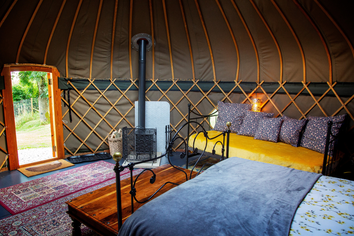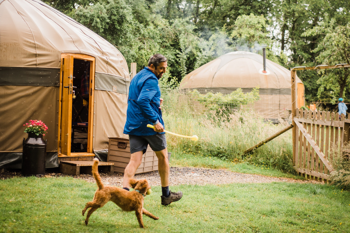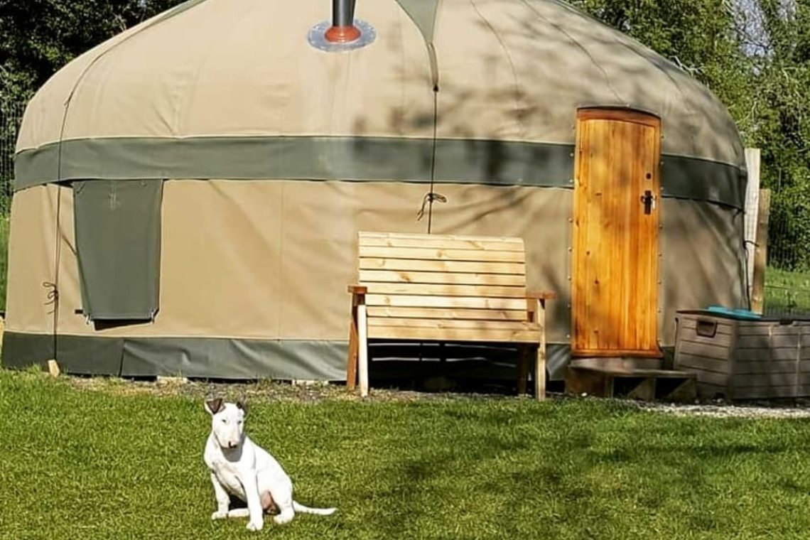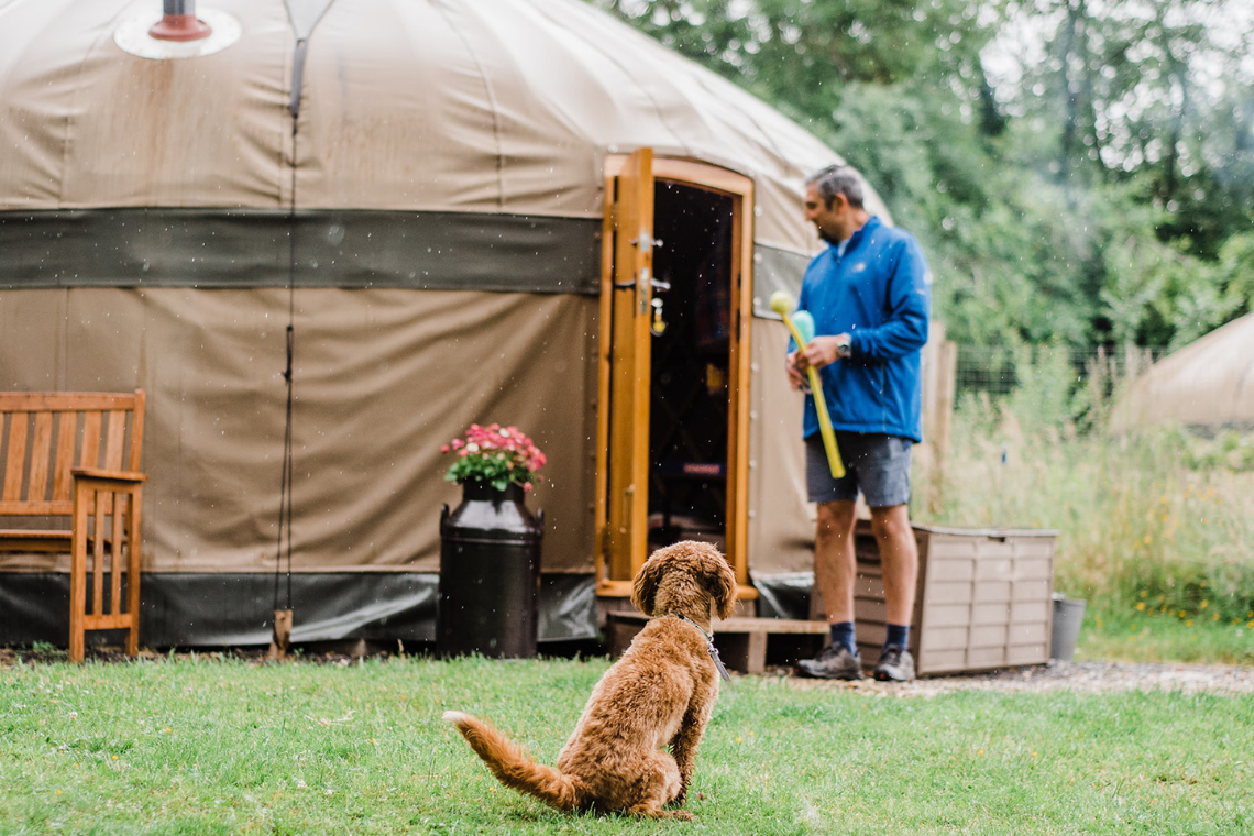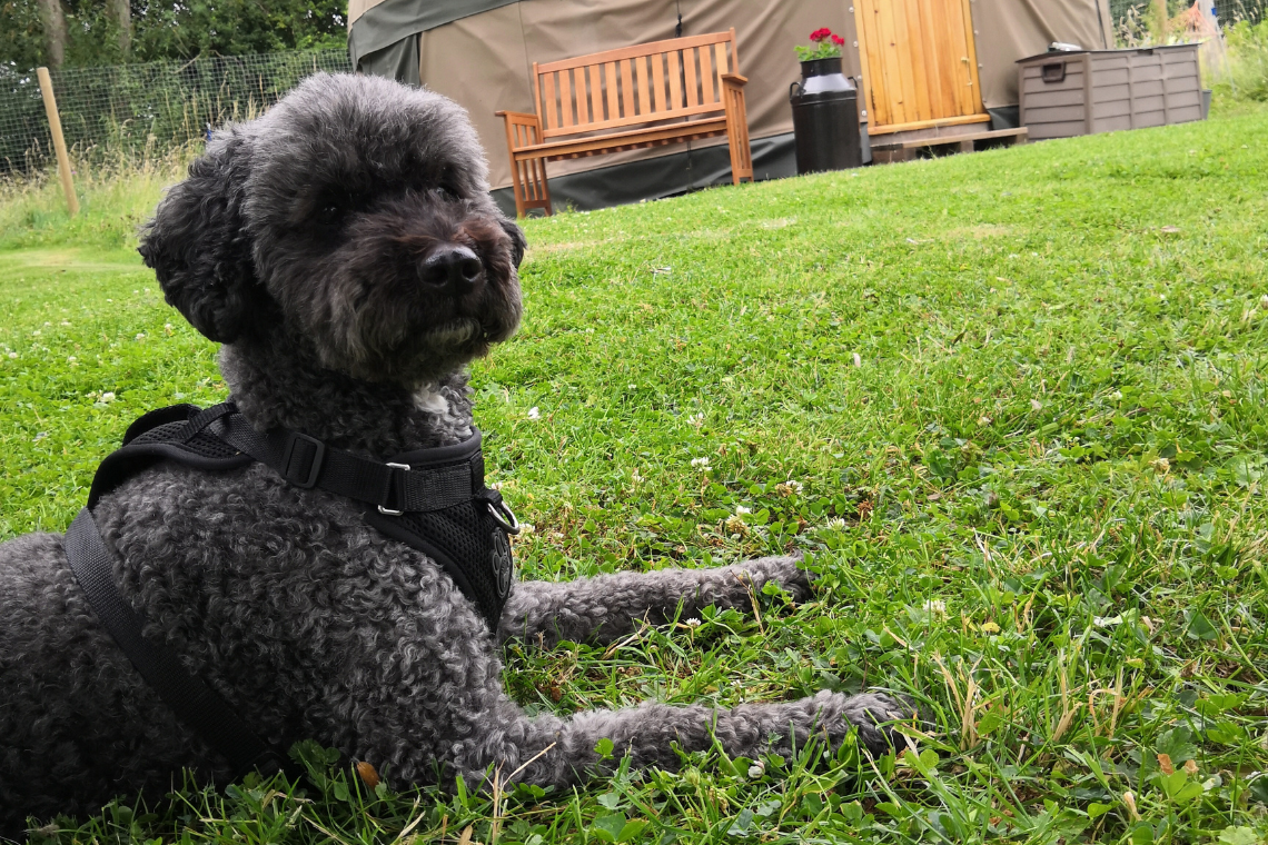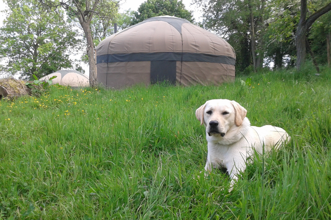 We know dogs need to feel safe and relax better if they are off the lead so this is an ideal space for them. We just ask that when outside of the yurt paddock, on the rest of the site, they are on leads as we have very freerange chickens and other guests to consider. Our glamping site is surrounded by farms with sheep, cattle, hens and ducks so keeping everyone safe and secure is our aim.