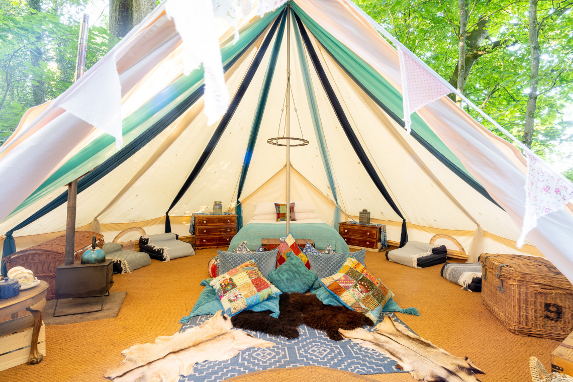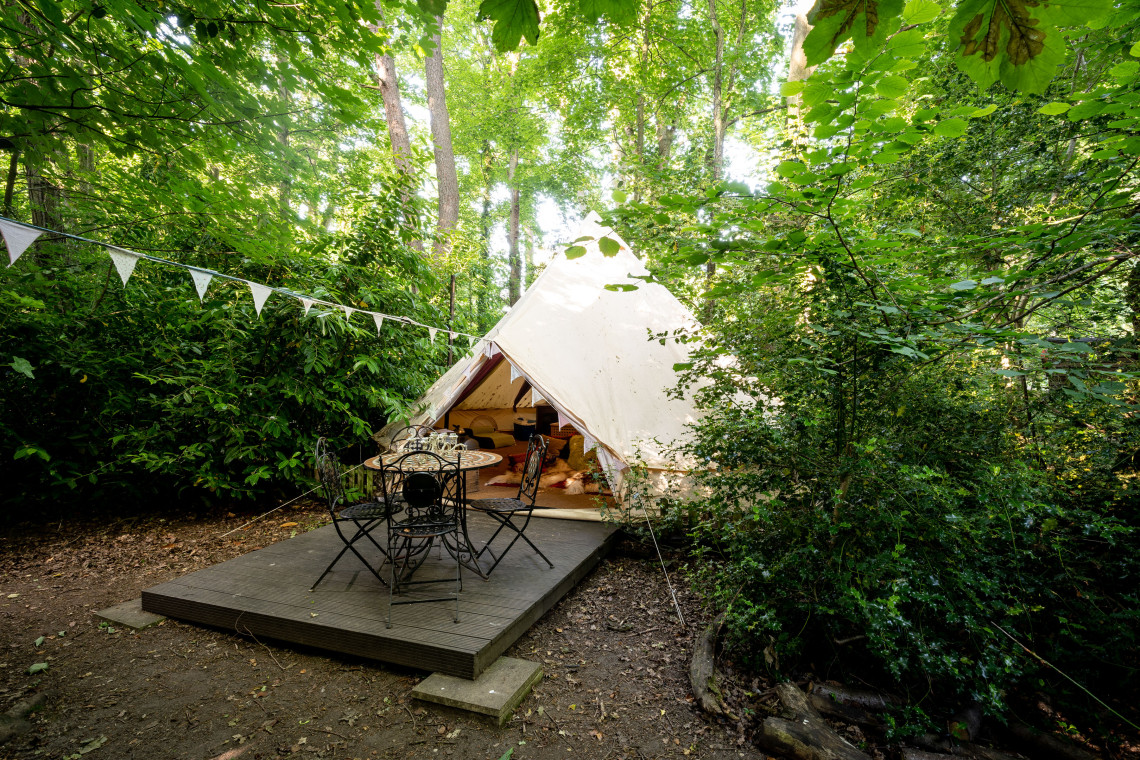A small family run Glampsite on the Hampshire Berkshire border set in 10 acres of woodland. Two vintage styled pods and 3 themed Bell Tents surrounded by beautiful countryside in an area of outstanding natural beauty in the Wessex Downs. Completely dog friendly taking any number of dogs except in the pods when there is full human occupancy (2 adults 2 children) as they are smaller than the tents and there may not be enough space. Amazing local walks and hikes which often end in all dog friendly pubs ranging from under a mile away to up to just under 4 miles depending on how far you like to walk! We provide everything you need for a self catering stay whilst still maintaining the feeling of camping!