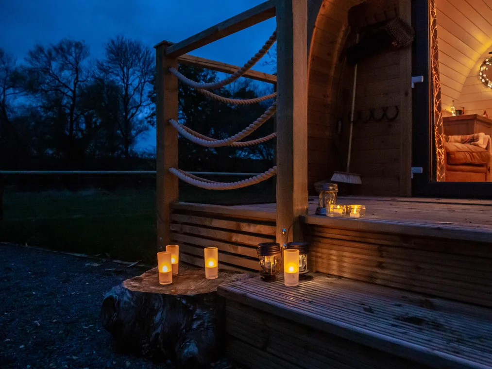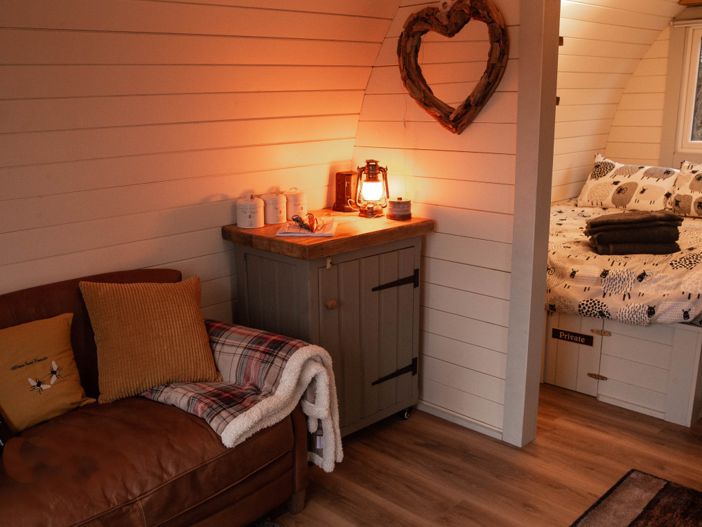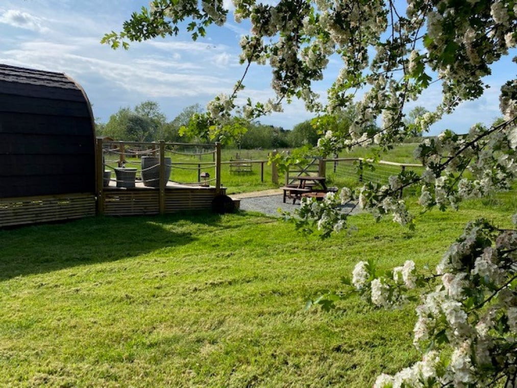 Enclosed gardens. Just 3 en-suite, heated glamping units. 2 stunning pods with double bed and kitchenette and one amazing Shepherds Hut with king size bed, kitchenette and Hot tub. Pet sitting service available to book direct with Happy Hounds Uppingham for 2026