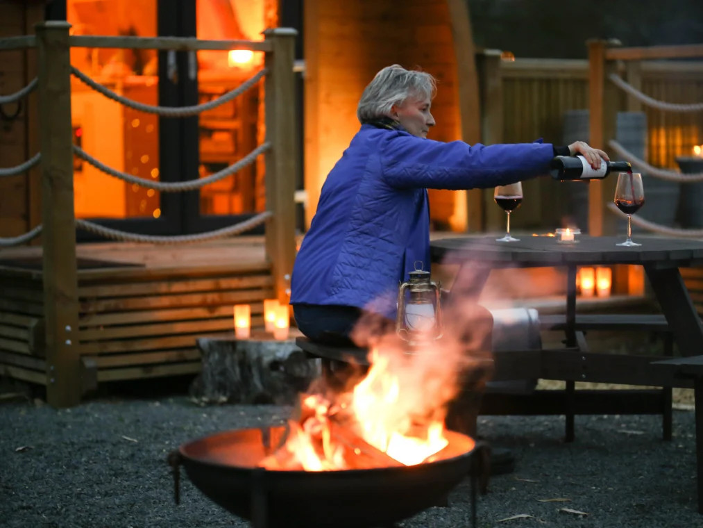 For the hoomans - The cabin had all the mod cons to make it comfy & warm, underfloor heating, heated towel rails, king size bed, fluffy bedding, all the pots, pans & crockery you’ll need, board games, wood fire hot tub, picnic table & seated options inside/outside, a fire pit and a hot shower!! A lovely welcome basket was left with yummy basics to snuffle up in the mornings & some yummy treatos in the fridge.