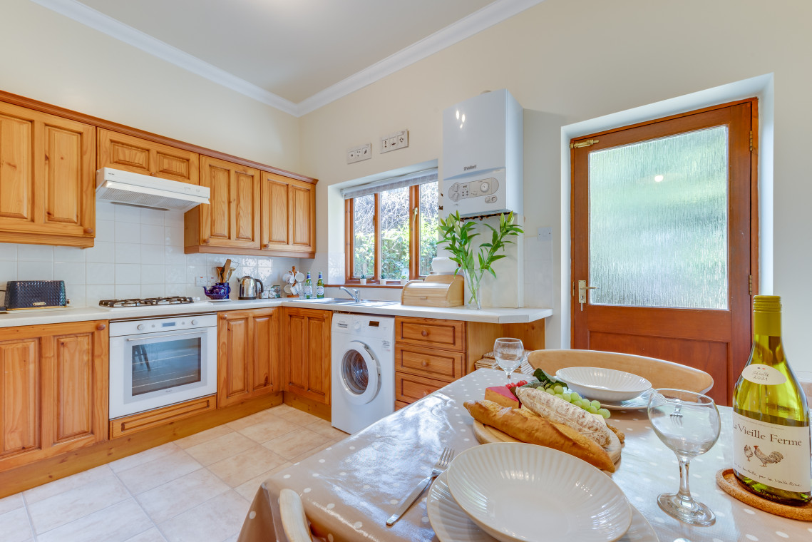 Kitchen/Utilities: Gas hob, electric oven, microwave, kettle, toaster, fridge-freezer, washing machine.