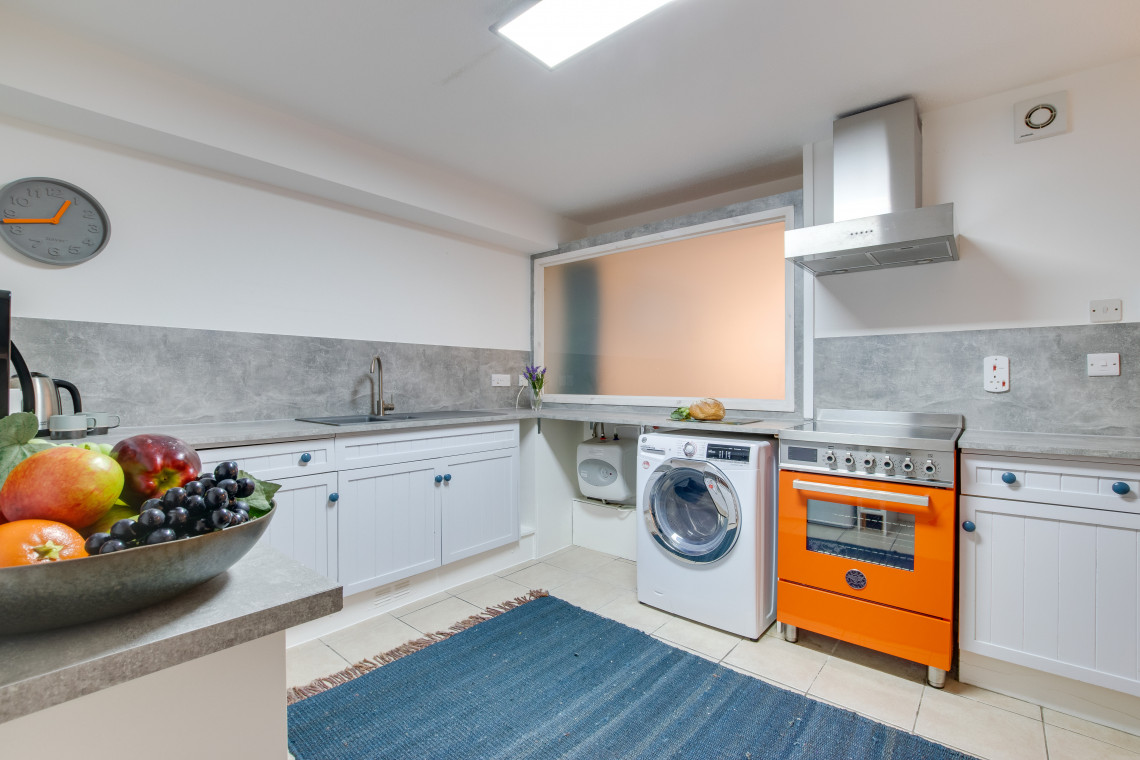 - Kitchen and utilities: Electric oven and hob, microwave, fridge, washing machine.