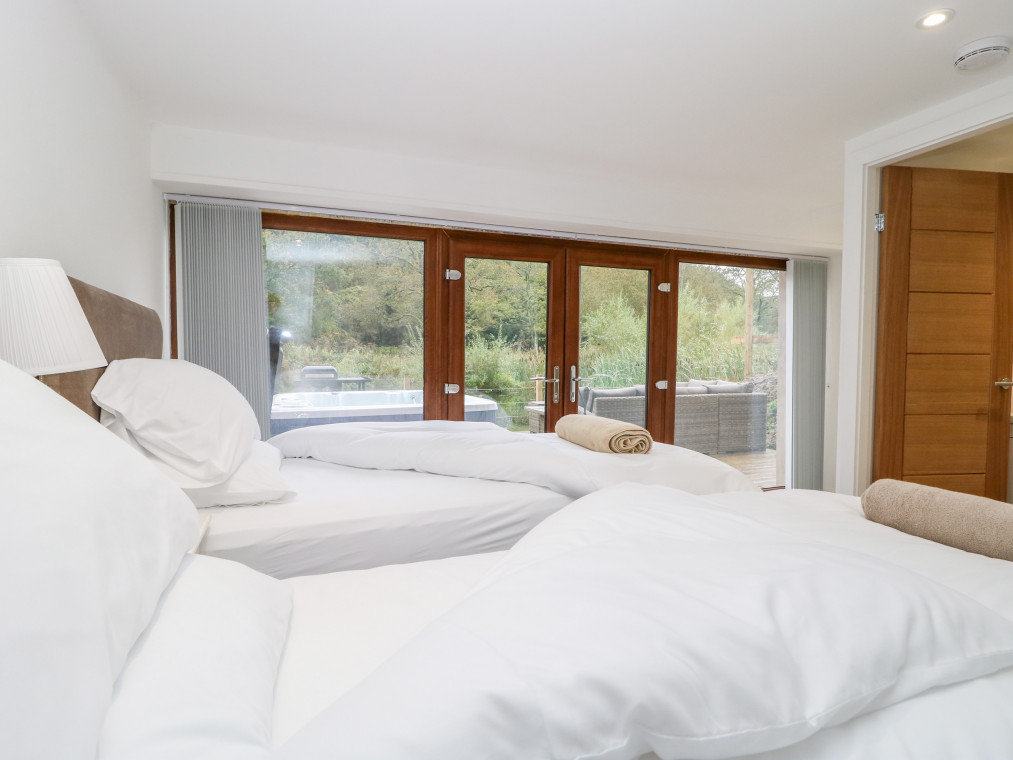 Brighouse 1.8 miles. Enjoying captivating views across the canal and situated within close reach of the bustling town of Brighouse is this well-presented dwelling, 14 Waterside Lodges. This elegantly-styled retreat is set up for a family of four seeking to explore the delights of this part of West Yorkshire with an outstanding base to come back to each evening, boasting a private hot tub for that extra touch of style. This reverse-level accommodation means that the open-plan living room is situated on the first floor, ensuring that you make the most of the scenic views. Downstairs, you will find two bedrooms, comprising of 2 super-king-size bedroom with en-suite showers and a twin bedroom. A wonderful base for exploring the countryside surroundings with your loved ones. Note: This property can be booked with Ref. 1013586, together sleeping up to 12 people. Reverse-level property. Two bedrooms: 2 x super-king-size bed (zip/link, can be made into twins on request) both with en-suite shower, basin and WC, 1 x twin. Bathroom with shower over bath, basin and WC. Open-plan living room with kitchen, dining area and sitting area with woodburning stove. Amenities for Rental Electric central heating with woodburning stove Oven, induction hob, washing machine, microwave, Smart TV and WiFi Fuel and power inc. in rent Bed linen and towels inc. in rent Starter pack for woodburning stove provided Off-road parking Decked garden with furniture and hot tub Access to 30 acres of walks around the park and lakes with fishing rights Pets are allowed Sorry, no smoking allowed Pub within 0.9 miles, shop within 1.3 miles Note: Property next to a lake and canal, children to be supervised at all times Note: although advertised in the pictures, there is no BBQ available for your stay and the owner's do not permit any use of a BBQ during your stay.