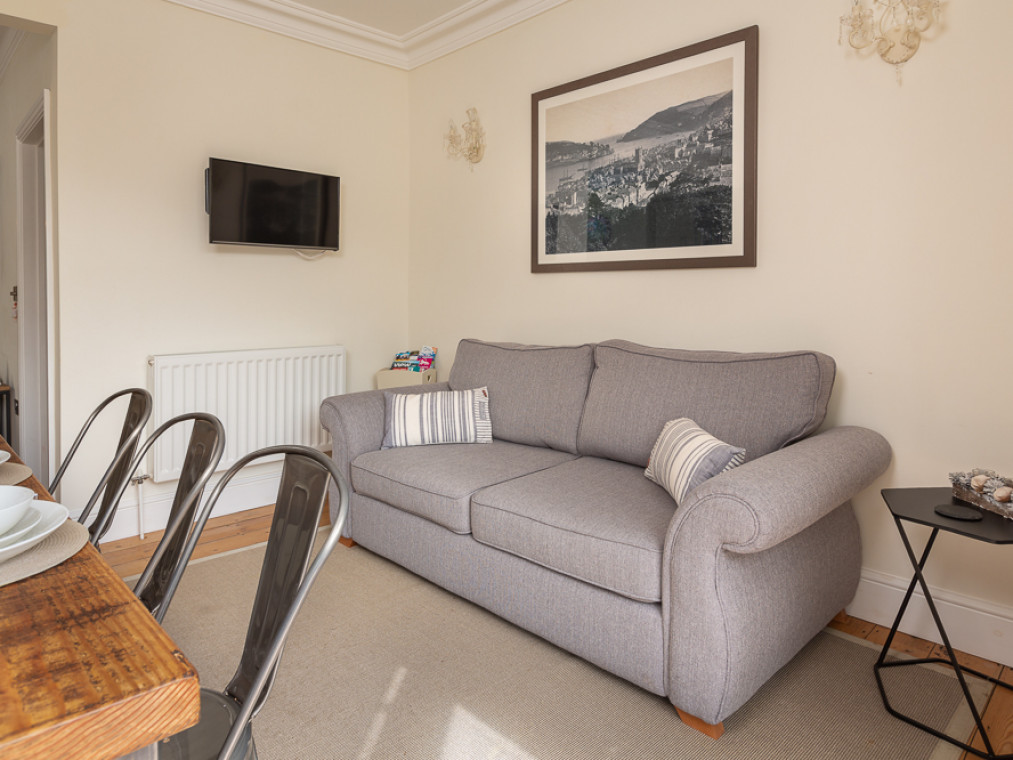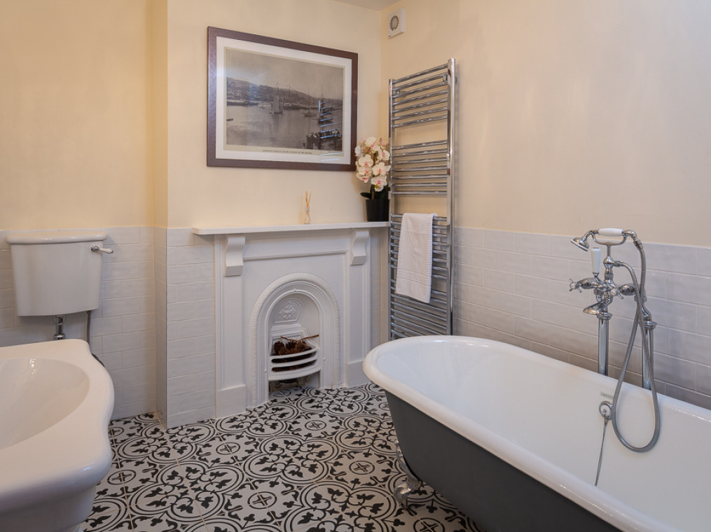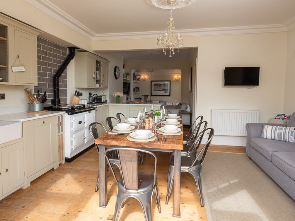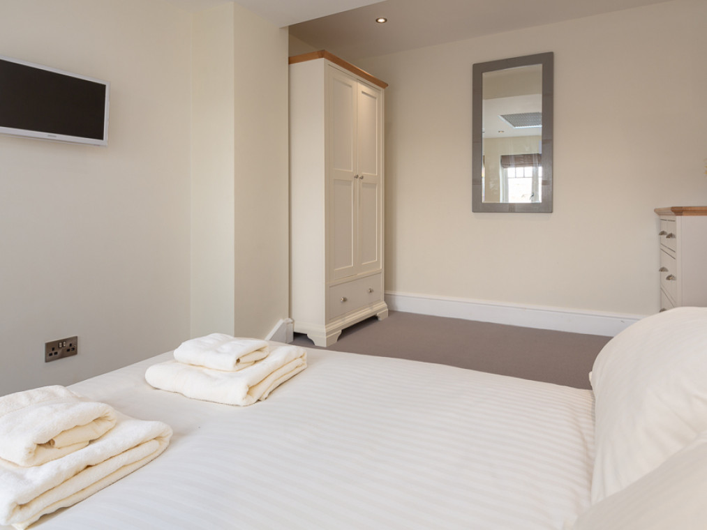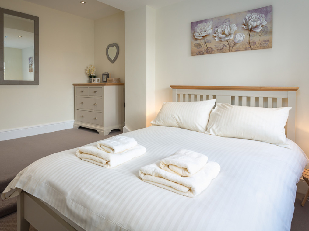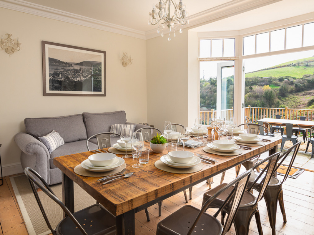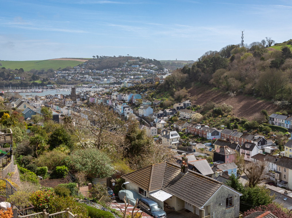 19 Fairview Road is a delightfully presented and very well-equipped holiday home with lovely elevated views over Dartmouth and towards the River Dart, furnished to a very good standard throughout, and with a parking space for a small/medium sized car in Lower Fairview Road. The property is found towards the top of Fairview Road, 10-12 minutes downhill walk into Dartmouth and its array of boutiques, galleries, restaurants and tea rooms, as well as the picturesque River Dart. Blackpool Sands beach is just a 5-10 minute drive away whilst Woodlands Theme Park is just 3 miles outside of Dartmouth. The property is accessed via a number of steps down from Fairview Road (or up from the parking in Lower Fairview Road) to the main entrance at ground floor level. The stunning open-plan living area has French doors opening out to the terrace. Across the hallway from the kitchen is a cleverly designed space incorporating a utility area, cloakroom with w.c., and secondary kitchen. On the second floor is a large en suite master bedroom with King-size bed and French doors to a small balcony, plus a fully tiled en suite. The second bedroom (at first floor level) has a double bed, whilst a lovely third twin room has two single beds. A fourth bedroom is furnished with Bunk Beds suitable for the younger guest. There is also a family bathroom and a further shower room at this level. To the front of the house is a spacious furnished terrace with views over the town. N.B. 39 steps lead down though the garden area to the parking area below. Children must be supervised. This recently upgraded accommodation is spread over three floors (internally) and is ideally set up for 2-3 couples or family groups, looking for a fantastic Dartmouth base. Four bedrooms: 1x King with en suite, 1x Double, 1x Twin and 1 x Bunk beds. Family bathroom. Further shower. Open-plan kitchen/dining/sitting room area with French doors opening out to the terrace. Open plan utility/cloakroom/secondary kitchen. Spacious paved terrace. Amenities for Rental Gas fired central heating and hot water 3-oven white Aga, Belfast sink, integrated dishwasher and fridge (with freezer compartment) and Wall mounted Smart TV. Secondary Kitchen with washing machine, tumble dryer, four-ring halogen hob, electric oven and larder fridge/freezer. Small balcony with bistro table and two chairs. Spacious paved terrace with views over the town, and furnished with a large garden table and eight chairs. Parking for one car in a private bay, 5m x 3.5m in Lower Fairview Road. Wireless broadband internet available. One well behaved dog permitted All duvets, pillows, bed linen and towels (excluding beach towels) are supplied.