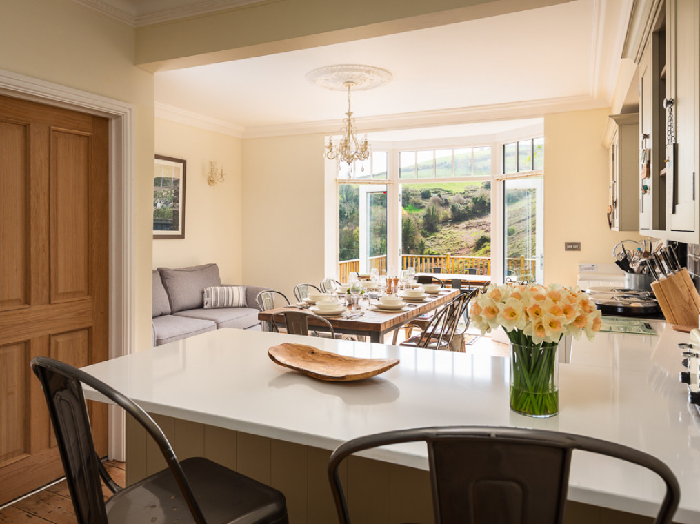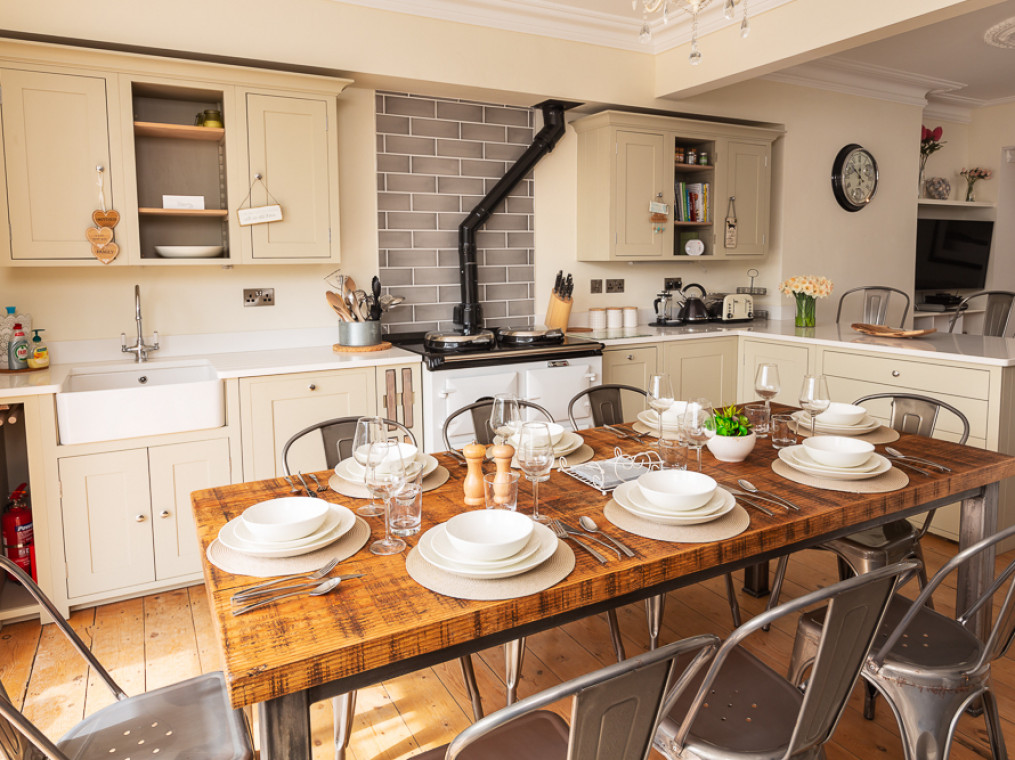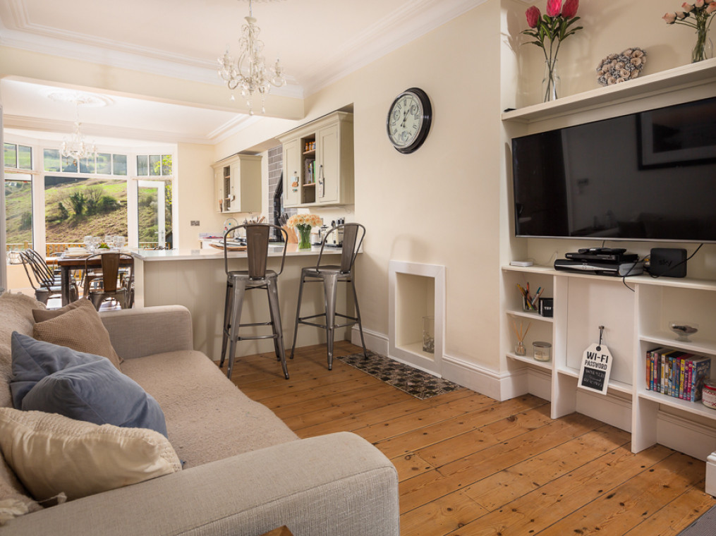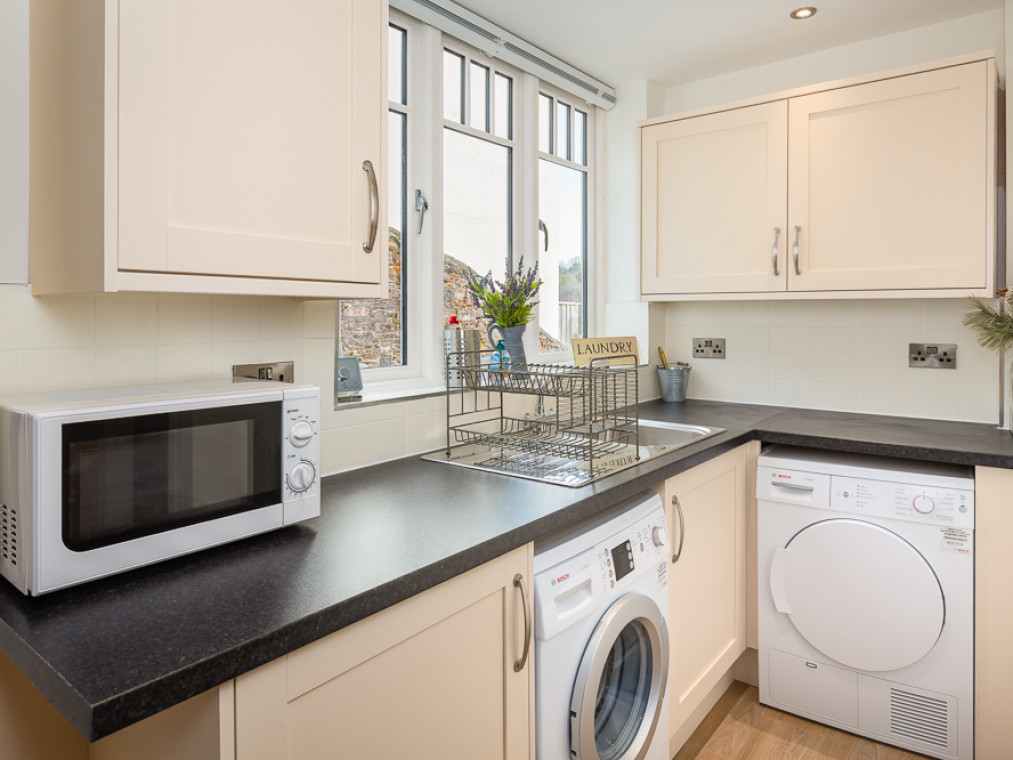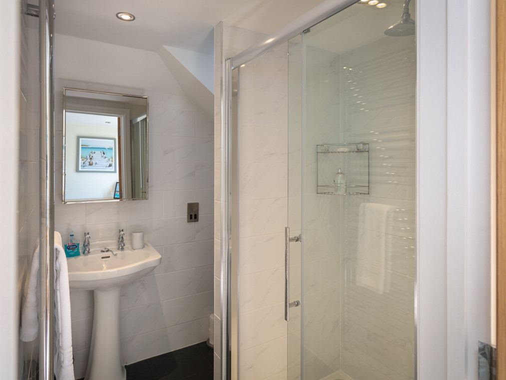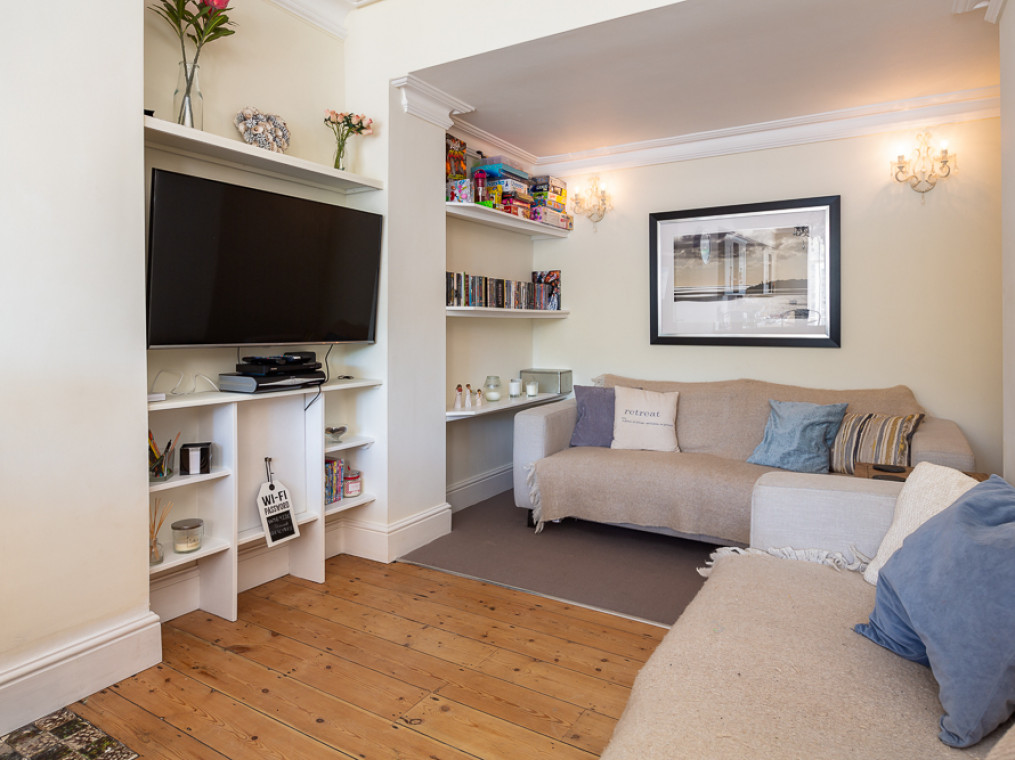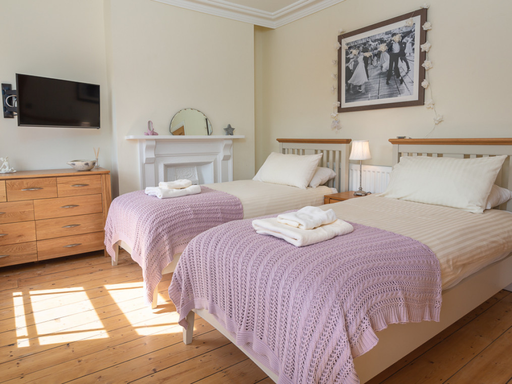 19 Fairview Road is a delightfully presented and very well-equipped holiday home with lovely elevated views over Dartmouth and towards the River Dart, furnished to a very good standard throughout, and with a parking space for a small/medium sized car in Lower Fairview Road. The property is found towards the top of Fairview Road, 10-12 minutes downhill walk into Dartmouth and its array of boutiques, galleries, restaurants and tea rooms, as well as the picturesque River Dart. Blackpool Sands beach is just a 5-10 minute drive away whilst Woodlands Theme Park is just 3 miles outside of Dartmouth. The property is accessed via a number of steps down from Fairview Road (or up from the parking in Lower Fairview Road) to the main entrance at ground floor level. The stunning open-plan living area has French doors opening out to the terrace. Across the hallway from the kitchen is a cleverly designed space incorporating a utility area, cloakroom with w.c., and secondary kitchen. On the second floor is a large en suite master bedroom with King-size bed and French doors to a small balcony, plus a fully tiled en suite. The second bedroom (at first floor level) has a double bed, whilst a lovely third twin room has two single beds. A fourth bedroom is furnished with Bunk Beds suitable for the younger guest. There is also a family bathroom and a further shower room at this level. To the front of the house is a spacious furnished terrace with views over the town. N.B. 39 steps lead down though the garden area to the parking area below. Children must be supervised. This recently upgraded accommodation is spread over three floors (internally) and is ideally set up for 2-3 couples or family groups, looking for a fantastic Dartmouth base. Four bedrooms: 1x King with en suite, 1x Double, 1x Twin and 1 x Bunk beds. Family bathroom. Further shower. Open-plan kitchen/dining/sitting room area with French doors opening out to the terrace. Open plan utility/cloakroom/secondary kitchen. Spacious paved terrace. Amenities for Rental Gas fired central heating and hot water 3-oven white Aga, Belfast sink, integrated dishwasher and fridge (with freezer compartment) and Wall mounted Smart TV. Secondary Kitchen with washing machine, tumble dryer, four-ring halogen hob, electric oven and larder fridge/freezer. Small balcony with bistro table and two chairs. Spacious paved terrace with views over the town, and furnished with a large garden table and eight chairs. Parking for one car in a private bay, 5m x 3.5m in Lower Fairview Road. Wireless broadband internet available. One well behaved dog permitted All duvets, pillows, bed linen and towels (excluding beach towels) are supplied.