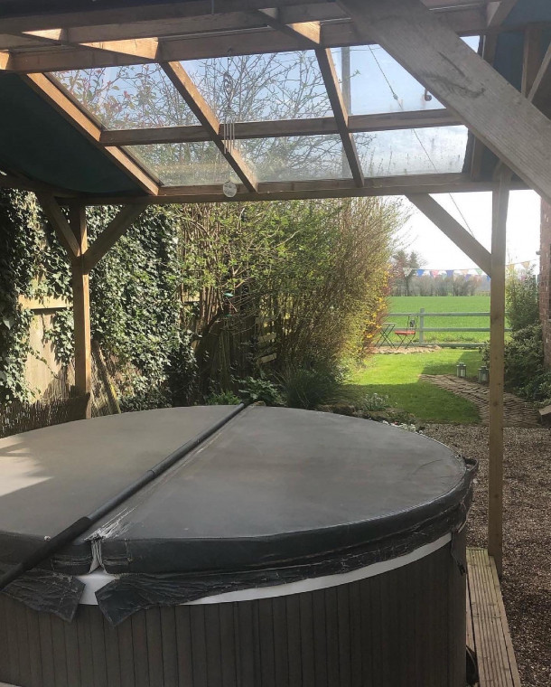 It’s a one bedroom cottage, hot tub, so after the walks you can relax, the garden is all fenced in and has far reaching field views, including chicken wire on the open fencing.