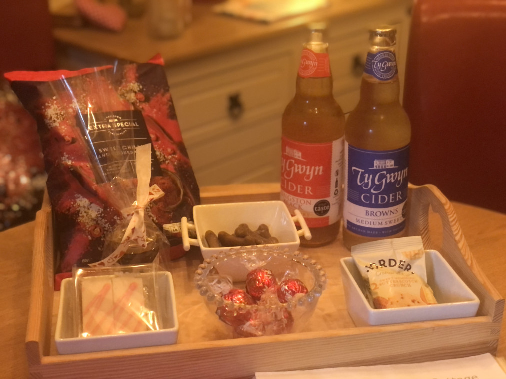 Welcome tray on arrival including treats for your doggy.