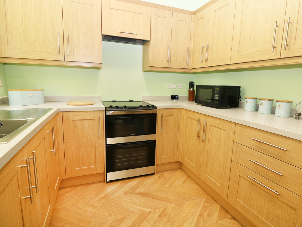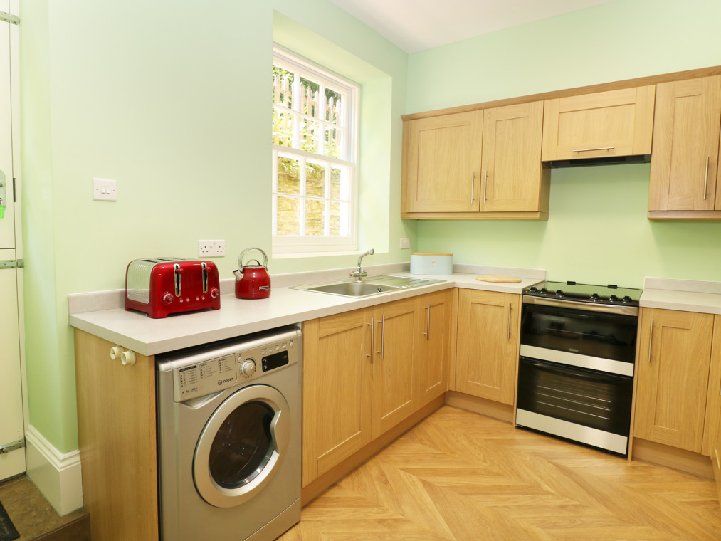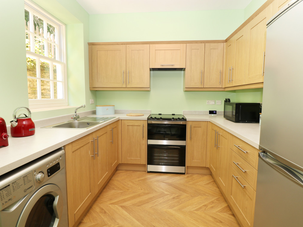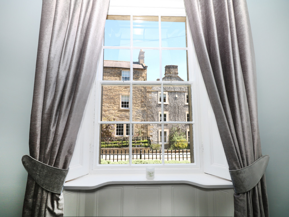 A contemporary, ground floor apartment within a beautiful three-storey, Georgian-style house on the Grade II listed Rutland Terrace in the town of Bakewell. Luxuriously furnished throughout, this modern apartment has spacious rooms, ideal for two couples or friends who wish to get away together. On entering this deluxe accommodation, you will find the sitting room with feature log fireplace, two plush sofas and TV. The kitchen is very modern with all the utensils you will need during your stay. The two bedrooms have luxury oak wood furniture and charming, made-to-measure, Georgian-style windows. Outside is a fabulous shared lawn accessed via stone steps, with patio table and chairs and views overlooking the rooftops. With the flat situated in close proximity to the town, featuring lots of pubs, shops and bars to explore, there is plenty of enjoyment to be had in the area. There are many places to visit during your stay including fabulous stately homes such as, Chatsworth House, Haddon Hall and Hardwick Hall. There is also Western Park Museum and Old House Museum, well worth a visit to discover local, historical artefacts and some temporary displays. The Peak District National park offers some breath-taking views and fantastic opportunities for cycling, walking and wildlife watching. This delightful apartment is at the heart of it all, the perfect getaway. All over one floor. Two bedrooms: 1 x double, 1 x king-size. Shower room with shower, basin and WC. Kitchen. Sitting room. Amenities for Rental Electric heating Electric oven and hob, fridge, freezer, microwave, washing machine, Smart TV with FreeSat, WiFi Fuel and power inc. in rent Bed linen and towels inc. in rent Resident Permit Parking for one car is provided in a car park to side of the property Shared rear garden with lawn and patio furniture Two well-behaved dogs welcome Sorry, no smoking Shop and pub 2 mins walk Note: Parking permit required, owner has one.