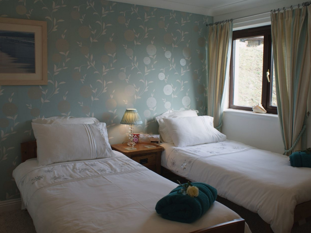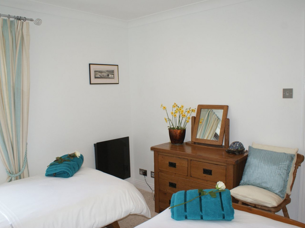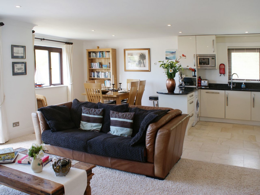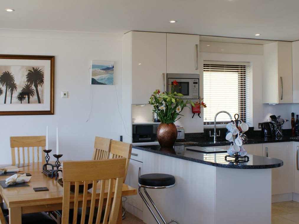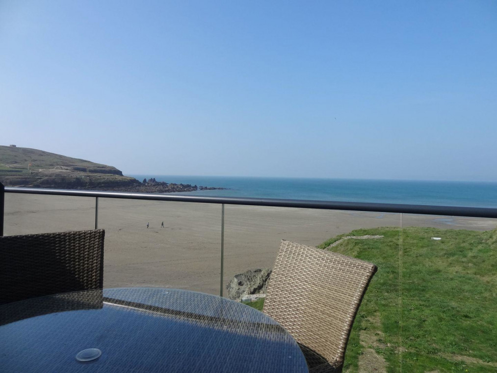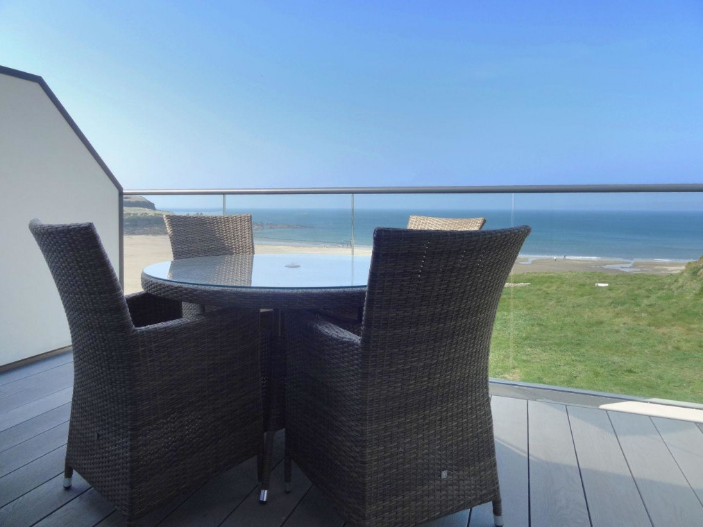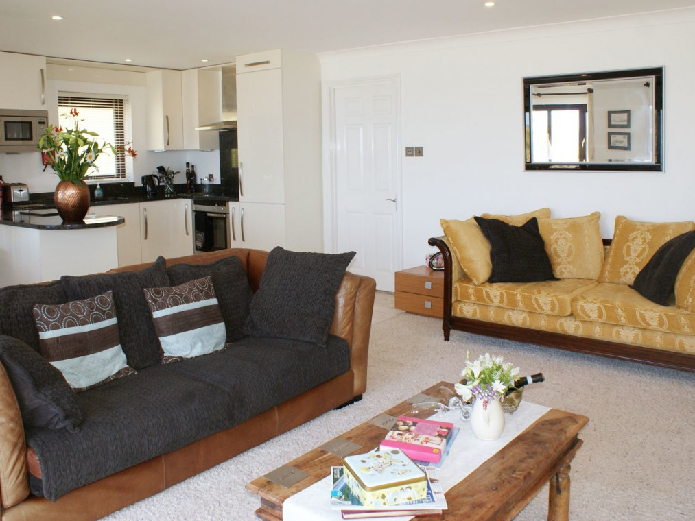 Apartment 29 is a top floor apartment, at the quiet end away from the leisure facilities, with the fabulous views to south and west and big glass doors opening to a good sized balcony with outdoor furniture. The bright, stylish open plan living space has pale carpet and sofas on which to relax and watch the smart TV. To the rear are the en suite bedrooms, comfortable and quiet. With the beach so handy and the leisure centre and restaurant/bar to enjoy, this is an ideal coastal holiday location. Note: This property is situated in the same complex as Apartments 2, 5, 6, 8, 12, 13, 17, 19, 22, 23, 24 and 27 and they can be booked together. One level. Two bedrooms: 1 x king size double with en suite bathroom with bath, shower over, WC and basin, 1 x twin with en suite shower room with shower, WC and basin. Open plan living space with seating area, dining area, kitchen and glazed doors to balcony. Shared use of leisure facilities and restaurant/bar within the building. Amenities for Rental Electric fires with underfloor heating Microwave, fridge-freezer, washer-dryer, dishwasher, Smart TV with DVD, WiFi, Phone, Fuel and power inc. in rent Bed linen and towels inc. in rent Cot and highchair available on request Off road parking for one car in a reserved parking space Indoor pool, jacuzzi, sauna Two well-behaved dogs welcome, Sorry no smoking Pub less than 1 mile from property, sandy beach 1 mile, Note: Check-in time 4pm Note: Leisure facilities open from 10am every day (except christmas day) Note: This property does not accept children under 14 in gym or sauna Note: The club restaurant/bar is open 10am to 9pm during the High Season, reservations recommended (for all other times of the year, please contact the Leisure Centre for opening times) Note: This property sleeps 4, including babies.
