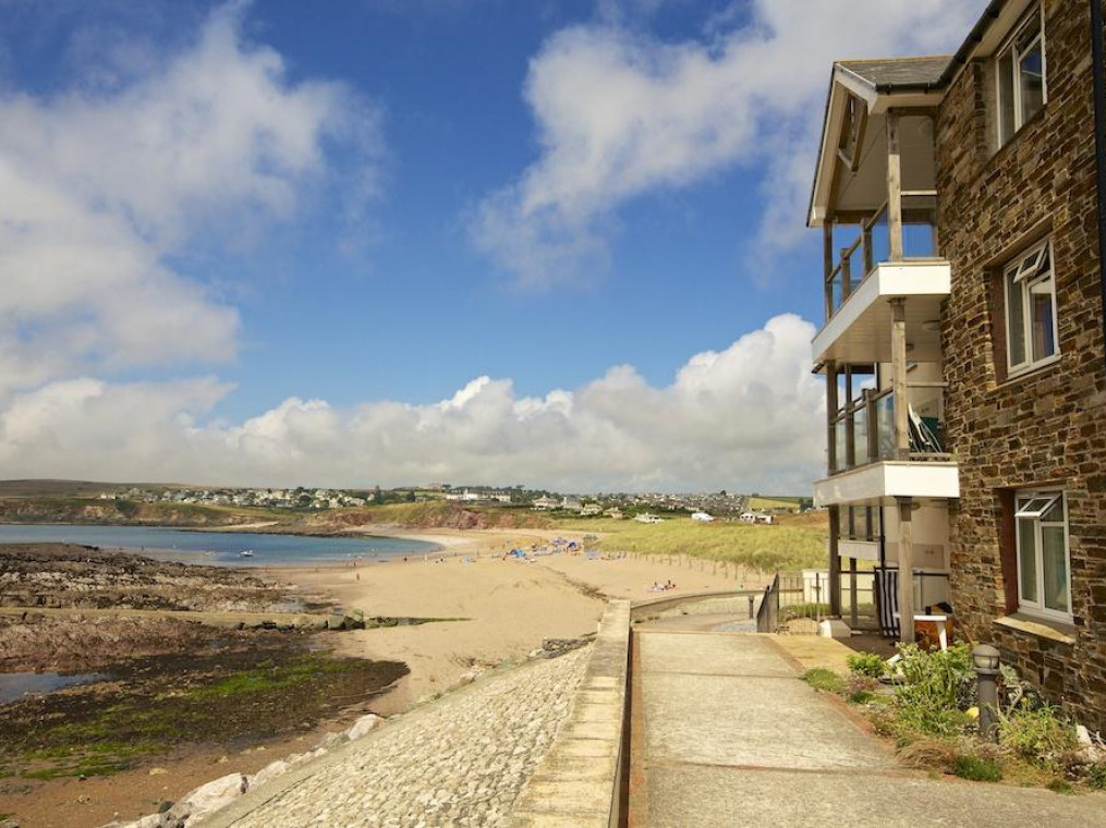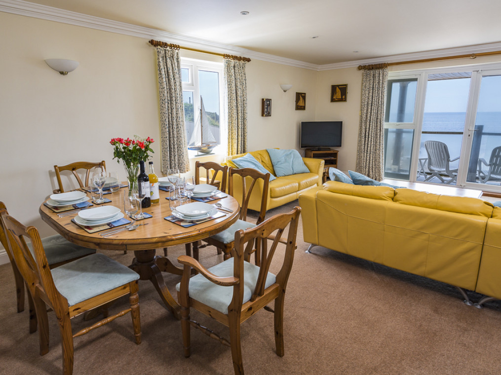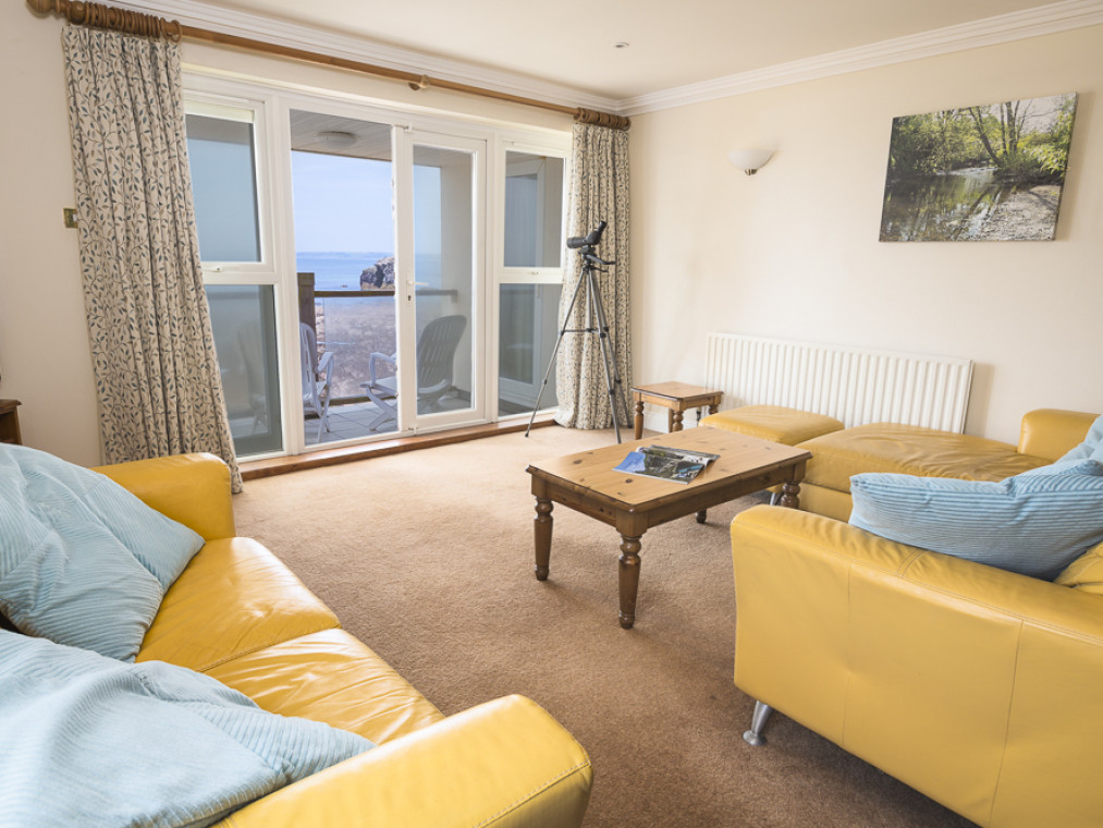 Situated on the edge of Thurlestone Sands, ‘Thurlestone Rock’ is a development of spacious marine apartments, all of which enjoy sweeping views towards Bigbury Bay. Thurlestone Rock and Burgh Island provide a stunning coastal vista, whilst the adjacent coastal path offers wonderful walks. It is the perfect spot for those in search of a luxurious coastal break. 3 Thurlestone Rock is a comfortable, pet-friendly first floor apartment enjoying fantastic ocean views from the living room and master bedroom. The kitchen is fully fitted (including electric fan double oven, gas hob, extractor, microwave, larder fridge, freezer and dishwasher) and has a small breakfast bar with stools. Additionally, there is a separate utility room with washing machine, tumble dryer and sink. The large, combined living and dining room boasts french doors that lead to a balcony (with table and chairs), with sea views. Comfortably equipped, there is also a dining table that seats six, two sofas, and TV/DVD unit. The master bedroom has a King-size bed, wardrobes and drawers, and en suite bathroom. The second bedroom has a 4’6” double bed, and ample bedroom furniture. The third has two twin beds. Both the second and third bedrooms enjoy uninterrupted countryside views. Duvets, pillows, bed linen and towels are provided. There is a further family bathroom, with bath, separate shower cubicle and heated towel rail. Guests have free wireless broadband, and also have use of the communal patio area with barbeque facility and sun deck. They also have exclusive use of the outdoor heated swimming pool during peak season. There is one allocated visitor parking space. First floor apartment. Three bedrooms: 1 x King-size with en suite bathroom, 1 x double and 1 x twin room. Family bathroom. Living/dining room. kitchen. Utility room with washing machine, tumble dryer and sink. Balcony. Amenities for Rental Electric fan double oven, gas hob, extractor, microwave, larder fridge, freezer and dishwasher. Dog friendly property. TV and CD player Wifi Telephone available. Allocated parking for one car, no trailers, caravans, boats etc. All duvets, pillows, bed linen provided – guests need to bring their own tea towels, beach towels and oven gloves.