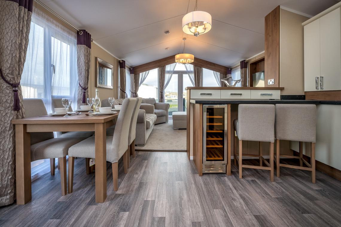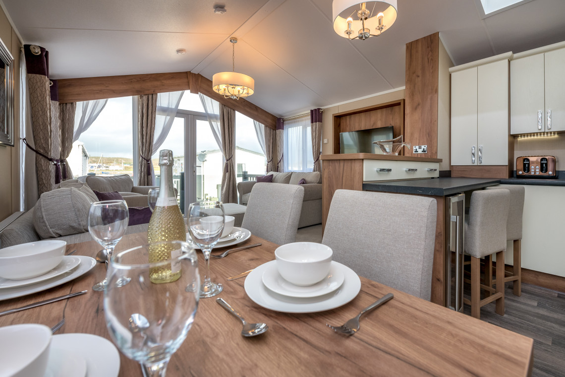 Perfect for family holidays, close to the beach and with harbour views, this modern and well-equipped lodge is located on the Gimblet Rock Carvan Park in Pwllheli. With an indoor pool, sauna, gymansium, bar, cafe and outdoor play area on site there is enough to keep all the family entertained. For those looking to explore head into the tradtional market town of Pwllheli, the bustling seaside villages of Abersoch, Nefyn and Aberdaron or the many sandy beaches and craggy coves of the Llyn Peninsula.