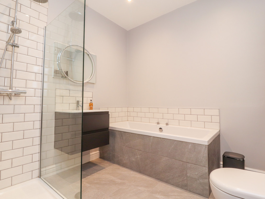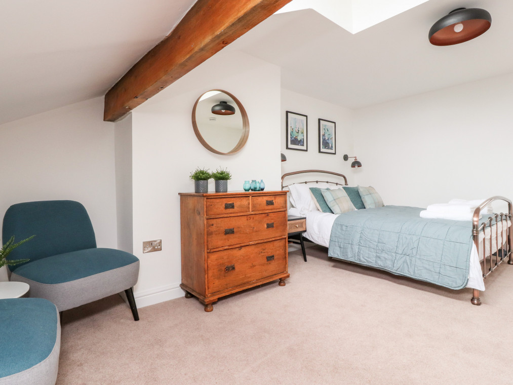 Resting in a beautiful corner of West Yorkshire is a lovely mid-terraced cottage, nestled in the village of Cross Roads near Haworth on the banks of the River Worth. 5 Myrtle View is a stunning three-storey abode providing a welcoming base for a rural escape to Yorkshire. Surrounded by serene views of idyllic countryside and the distant Keighley and Worth Valley Railway, feel at home as you enter the property, welcomed by a stylish open-plan living area. Kick back and relax in the lounge space, curling up next to the roaring flames of the woodburning stove as you flick through the Smart TV. Resting behind is a well-equipped kitchen, offering a range of contemporary amenities and sleek fixtures, meals can be enjoyed on the family dining table, or use this space for a fun-filled night of bard games, drinks and laughter. Slide back the bifolding patio doors to find a unique tiered garden, here you can sip on a hot cup of coffee and indulge in the peaceful surroundings, as well as a stone shed where you can store any bikes or outdoor equipment. Withdraw to one of the charming bedrooms spread throughout the first and second floors, the first floor boasts a well-presented king-size, whilst the single room boasts funky and bright décor and ample storage. Travel up steep stairs to the third floor into the master king-size bedrooms, featuring characterful oak beams and Velux windows, benefiting from a luxurious en-suite shower room, ideal for guests wanting more privacy. The rest of the party have full use of the first-floor bathroom, fitted with a sumptuous double ended bath, a large separate walk-in shower, and a heated towel rail for your comfort. Step out into the quiet village of Cross Roads where you'll find a local store in the Post Office and a village pub for an evening of traditional pub food after a day of exploring. Wander over to the historic village of Haworth, the famous home to the Brontë sisters, boasting a wealth of shopping, eateries and pubs, as well as fascinating attractions at the Brontë Parsonage Museum, and the iconic Keighley and Worth Valley Railway for an unforgettable day trip over Yorkshire beauty. Make the most of the adventurous outdoor setting, heading over to a 500 acre park at Bingley St Ives, hosting golf courses, walking opportunities, a glistening lake, and the landmark of Lady Blantyre's Rock. Spend a day of thrills as you venture into the wonderful North York Moors National Park, offering superior selection of walking trails, cycling paths, rare wildlife, outdoor activities, or over to the vibrant city of Bradford. Relish in a classic getaway to West Yorkshire at 5 Myrtle View. Over three floors. Three bedrooms: 1 x second-floor king-size with en-suite shower, basin, heated towel rail and WC, 1 x king-size, 1 x single. Bathroom with double ended bath, separate shower, basin, heated towel rail and WC. Open-plan living space with kitchen, dining area and sitting area with woodburning stove Amenities for Rental Gas central heating and woodburning stove Electric oven and induction hob, microwave, fridge/freezer, washing machine, dishwasher, Smart TV, WiFi Fuel and power inc. in rent Bed linen and towels inc. in rent Off-road parking for one car and roadside parking for one car Tiered garden with lawn, decking with seating and a shed for bike storage One well-behaved pet welcome Sorry, no smoking Shop 0.3 miles, pub 0.2 miles Note: The top staircase on the third floor has steep and narrow steps