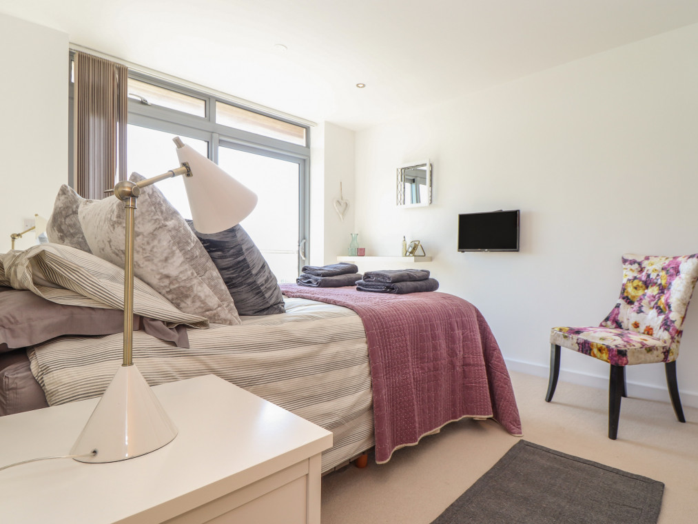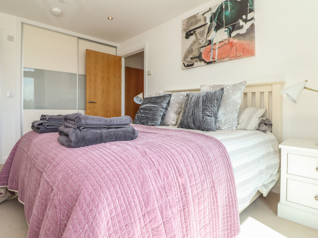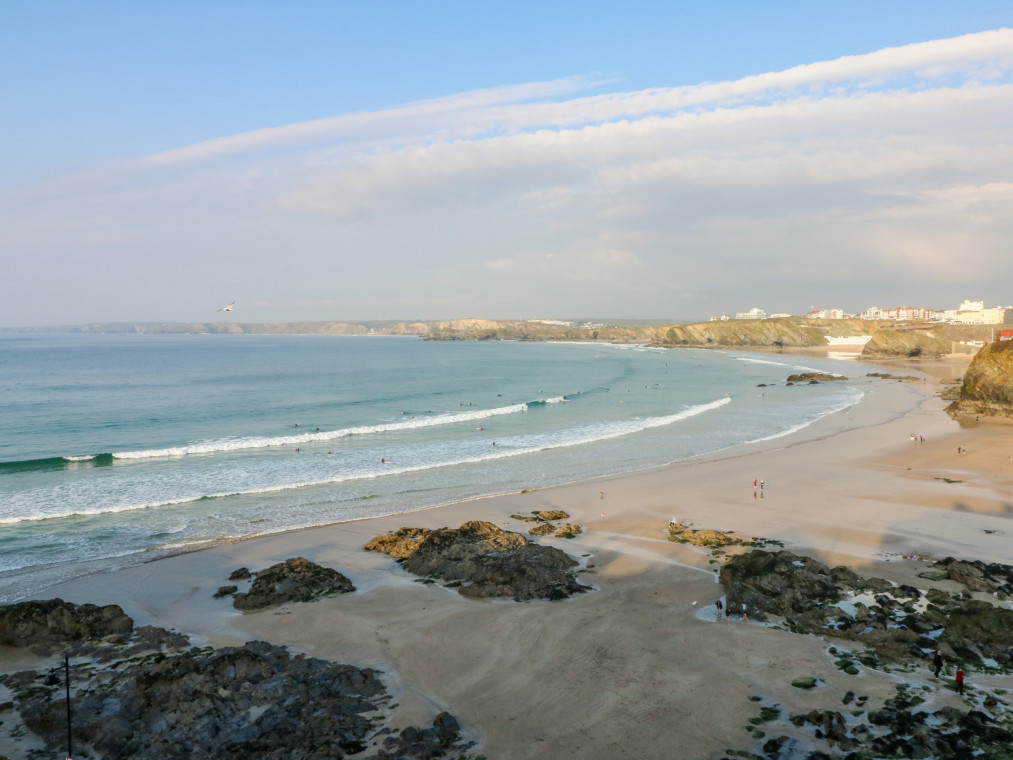Boasting captivating views across Newquay Golf Course and over towards pretty Fistral beach, you'll find this superbly appointed, south facing apartment situated within a landmark property, in the bustling town. This coastal retreat comes within striking distance to a vast array of attractions and amenities to suit a group of families, friends, surfers and golfers with a well-equipped base to return to each evening. Spend your evenings in the open-plan living room, with patio doors which filter natural light into the space and offer breath-taking views as you sink into the carefully selected furnishings. Pick up local produce from the nearest shop and look forward to rustling up a delicious evening meal for your loved ones. Or pack up a picnic to take to one of the glorious beaches located in this corner of Cornwall. After dinner, lounge on the L-shape sofa and tune into the TV or throw open the doors to enjoy a deserved glass of something refreshing as you catch the final glimpses of sunshine over the glorious beach. Once the sun has set, retire for the night in one of the elegantly presented bedrooms, comprising of a king-size bedroom with an en-suite shower and a twin bedroom which is serviced by a bathroom with shower over bath, basin and WC. For those special occasions, head into the centre of Newquay where you will be spoilt for choice by the bars, inns and restaurants that await you, as well as a number of shops for picking up the essentials. Whilst here, look forward to a round of golf on the local course, soaking up the sun at the three beaches in the town or spend a memorable day at the Zoo or Blue Reef Aquarium, which will delight any younger guests. 8 Cribbar promises to be a refreshing break for you and your loved ones to enjoy this special part of Cornwall. Two bedrooms: 1 x king-size with en-suite shower, basin and WC, and 1 super king-size (zip/link beds, can be made into 2 singles upon request ). Bathroom with shower over bath, basin and WC. Open-plan living room with kitchen, dining area and sitting area. Utility cupboard. Amenities for Rental Gas central heating Dishwasher, freezer, fringe, microwave, electric oven and hob, toaster, kettle, washer/dryer, TV and WiFi Fuel and power in rent Bed linen and towels inc. in rent Highchair available Underground parking for one car Balcony area with furniture Well behaved dog welcome at a charge Sorry, no smoking allowed Pub within 0.2 miles, shop within 0.5 miles Note: The property has a lift and wheelchair friendly