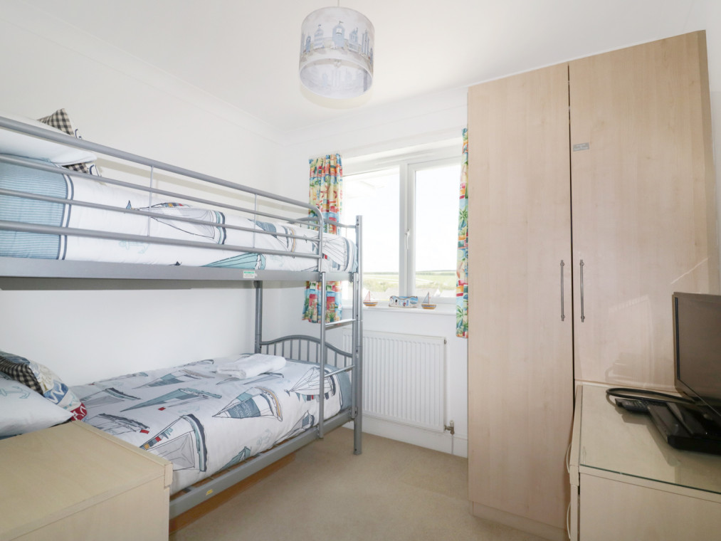 Perfectly located for beach and walking holidays, this spacious cottage is set a few minutes' walk to the beach at Harlyn Bay, considered one of the best family beaches in Cornwall. 3 miles west of Padstow on the stunning North Cornish Coast and 2 minutes' walk to the South West Coast Path, this is the ideal setting for memorable holidays. After parking in 1 of your 2 private spaces right in front of the cottage, you enter the cottage into the open-plan living room. Comfy sofas, a dining area overlooking the garden and a well equipped kitchen are included. On the first floor is the family bathroom and the three bedrooms, all of which have a TV. The bunk bedroom is ideal for the children, a double with a dressing table and the master with a king bed, a dressing table and an en-suite shower, WC and basin. Outside at the rear of the cottage is an enclosed garden with a table and chairs for alfresco dining. Adjoining the garden and patio is a small field for which you have private use, ideal for exercising both pets and children. With Padstow and St Merryn both close by you will be spoilt for choice when it comes to dining out. The ideal family cottage in a wonderful location for a great Cornish coastal holiday. Three bedrooms: 1 x King with en-suite shower cubical, WC and basin, 1 x double, 1 x bunk. Bathroom with bath, shower cubical, WC and basin. Ground floor cloakroom with WC and basin. Open-plan living room with kitchen, dining and sitting areas. Amenities for Rental Calor gas central heating Electric cooker, microwave, large fridge-freezer, microwave, healthy air fryer, George Forman grill and oven, washer and separate dryer, dishwasher, WiFi, Sky Q tv, Phone, smart tv in lounge, tv in each bedroom, 3 video players and 100s of DVDs Lots of games and puzzles for all ages and a bookcase full of books for all ages All sizes of wetsuits from baby to adult, body boards, beach toys, beach equipment Enclosed rear garden with patio set plus grassed field with double children swing and picnic bench Outdoor shower and tap Off-road parking for 2 cars Adjoining field for pet exercising Two well behaved pets welcome Sorry, no smoking Shop and pub 1 mile.