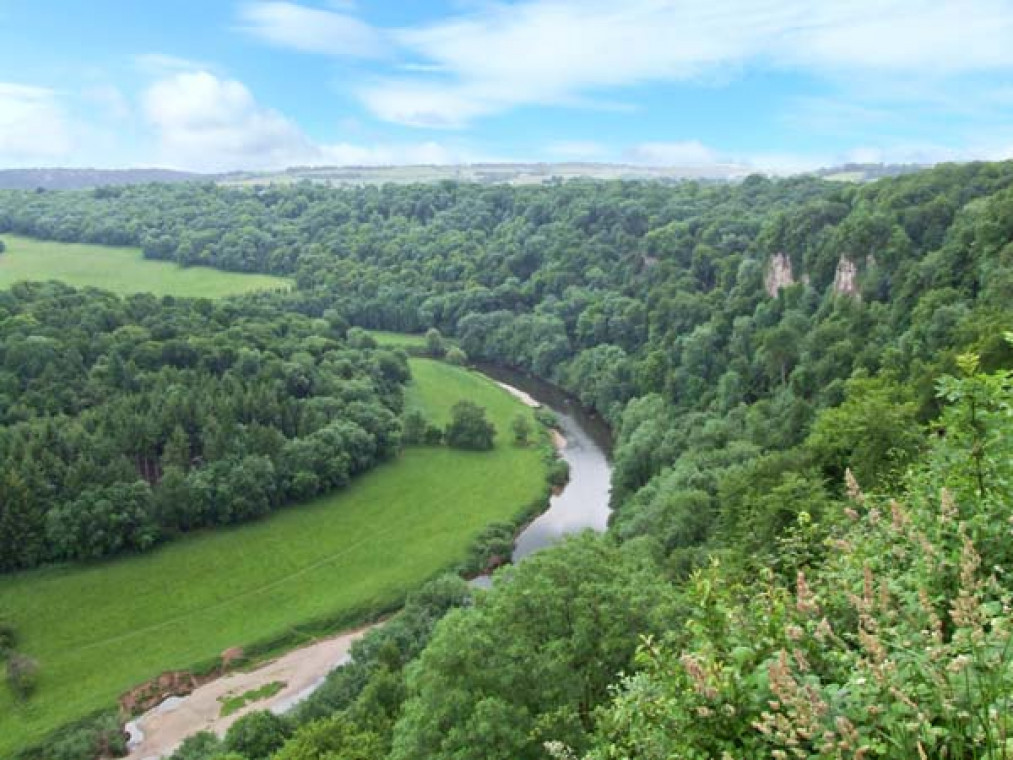 A charming mews-style, end-terrace cottage set over three floors, with the holiday accommodation on the top two floors above the ground floor garage, making the most of the spectacular views. This delightful Herefordshire holiday cottage offers two charming bedrooms, a cosy sitting room with woodburner and a well-equipped kitchen. This Symonds Yat cottage is a wonderful holiday base at any time of year. Note: The property can be booked with next door Ref. 912225, together they sleep 9. Over first and second floors. Two second floor bedrooms: 1 x double, 1 x twin with pull-out stacker bed. Second floor bathroom with bath, shower over, basin and WC. First floor kitchen with dining area. First floor sitting room with sofa bed and woodburner. Amenities for Rental Electric storage heaters with woodburner Electric oven and hob, microwave, fridge, freezer, dishwasher, TV with Sky, DVD, CD/radio, iPod dock, WiFi, selection of books, games and DVDs. Fuel, power and starter pack for woodburner inc. in rent Bed linen and towels inc. in rent Travel cot and highchair on request Off road parking for 1 car and garage parking for 1 car Lockable bike storage Patio with furniture and BBQ Shared use of 1.5 acres of landscaped gardens with furniture Two well-behaved dogs welcome Sorry, no smoking Shop 1 mile, pub 10 mins walk Note: The pub offers a river ferry which operates until closing time Note: Approx 20 external steps lead up to the rear door of the property Note: Max. 5 people.