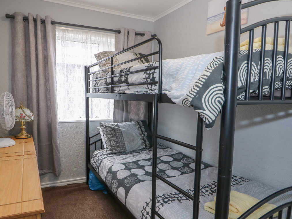 This wooden-clad lodge is situated on Cherry Park resort in the village of Chapel St Leonards. Approached via main country roads, you will eventually turn off into a thriving metropolis of activity, just a few minutes form the beach. this chalet offers a couple or a small family of four the chance to explore a new area. Positioned near the popular resort of Skegness, with long sandy beaches and brightly painted beach huts, this is the ideal place to relax near the sea. Step in through the front door and stroll into the open-plan living room, fully equipped with a kitchen, dining area and sitting area. The L-shape sofa is a cosy place to snuggle, whilst the dining table offers hours of fun with a board game or two. Leading off from here is the shower room and two neutrally styled bedrooms; a double and children's bunks. There is also a sofa bed should you wish to bring along an additional guest. Outside you have a little seating area in the front enjoying a sunny patio and there is space to the rear, enclosed with a washing line. Just a few minutes’ walk will bring you to a few pubs, shopping precinct and a wide choice of takeaways. The village centre is bursting with further cafés and restaurants. You can spend a lovely day out with the family, hire motorboats or quad bikes, play a game of crazy golf or take a trip to Fantasy Island Theme Park in nearby Ingoldmells. Surrounded by beaches and in close proximity to The wolds, this chalet is a charming base for touring the region. All ground floor. Two bedrooms: 1 x double, 1 x children's bunks. 1x Sofa bed in living room suitable for 2 adults. New improved Shower room with shower, basin and WC. Open-plan living room with kitchen, dining area and sitting area. Amenities for Rental Electric heating New electric cooker (double oven & grill), microwave, New large fridge/freezer Washing machine TV with built in DVD, WiFi, selection of games and DVD's Fuel and power inc. in rent Bed linen and towels inc. in rent Off-road parking for 1 car Enclosed rear garden fully updated Decking at the front of the chalet, this is fully enclosed plus extra outside furniture Two well-behaved dog welcome Sorry, no smoking Shop and pub 2 mins walk No stag/hen or similar Note: The double bed can only be accessed via one side