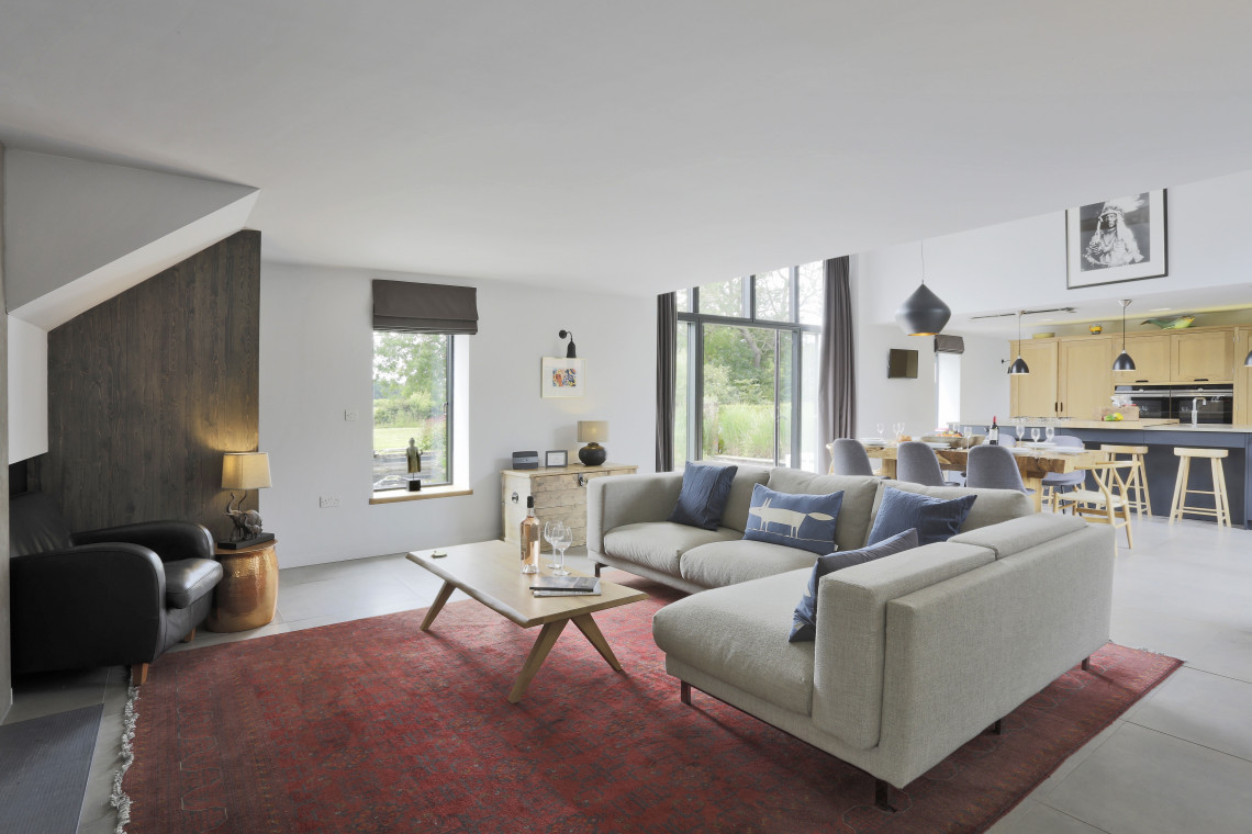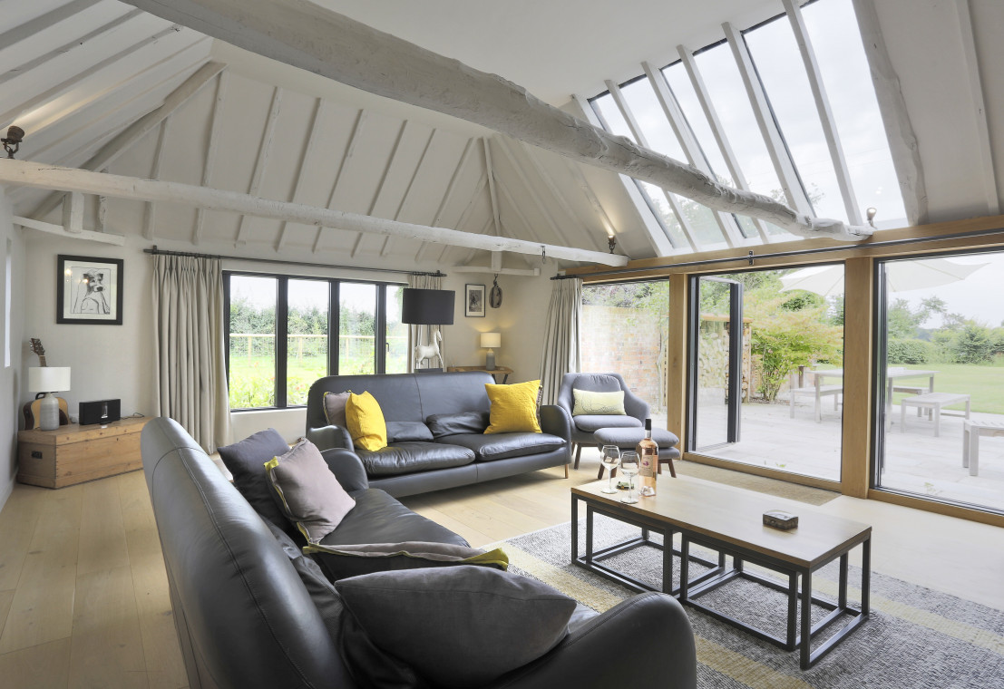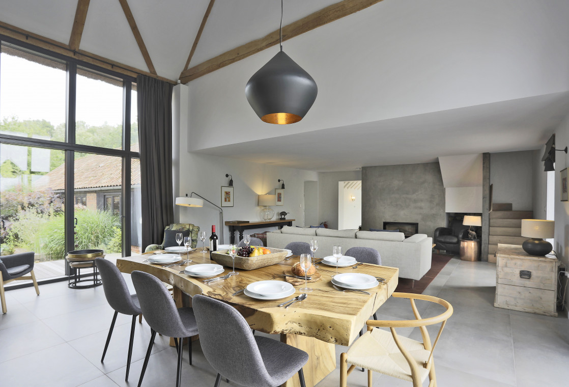 This barn is stunning! Recently converted to a very high specification and beautifully furnished throughout - a stylish five bedroom holiday rental for ten guests just a few miles from Southwold and the coast. The barn occupies a secluded spot with a large garden. Accommodation is very flexible with three bedrooms and two shower rooms on the ground floor and the remaining two ensuite bedrooms on the first floor. A good option for a couple of families or less able guests.