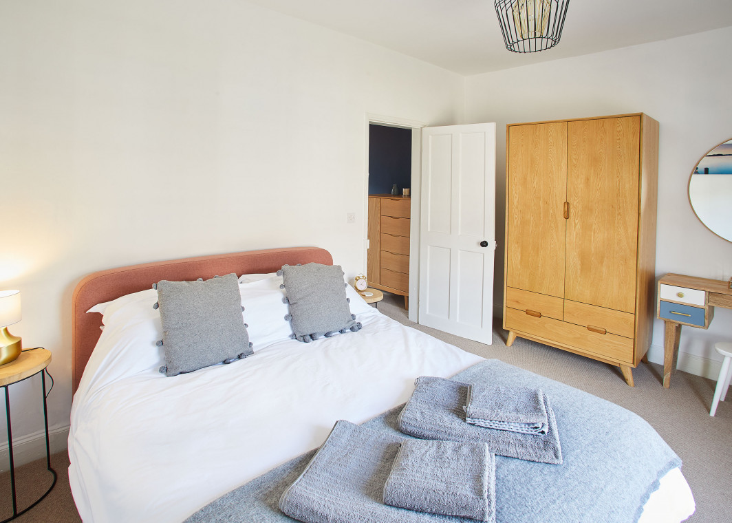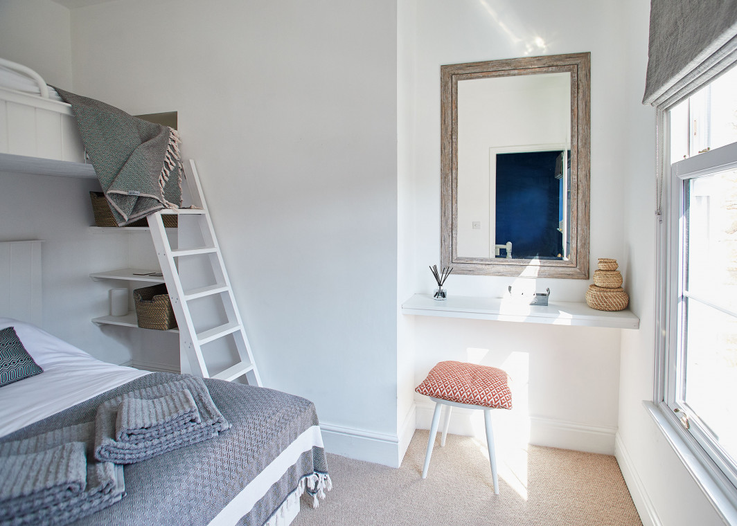 Read MoreWelcome to 45 Alma Terrace .. step through the front door into the lovely hallway which has ample space for hanging coats and space for kicking off your shoes ready to relax! The open-plan living area is stylish and homely. Light floods in from the large bay window creating a tranquil space. Relax on the comfortable leather sofa after a long day exploring. Get lost in a good book or switch on the flat-screen for TV/music. The dining space has a striking deep blue chimney breast, perfectly complimented with natural wood furnishings. The Ercol dining table and chairs seat 5 guests - a great spot for family meals. The modern kitchen is well equipped with oven, hob, dishwasher, fridge-freezer, washing machine, microwave, toaster and kettle – Alma Terrace has everything you could need for your stay. Teabags (Yorkshire of course), herbal tea, coffee, fresh milk, sugar and a full cookie jar are all provided for your enjoyment. The kitchen is complete with basic ingredients for cooking such as oil, balsamic vinegar, herbs and spices as well as ample utensils, crockery and glassware. Outside is a private courtyard garden which is a real sun trap in the summer months. The south facing space has outside seating - including a round table, chairs and benches. It is the perfect place to enjoy an alfresco meal with friends and family. Around the edge of the courtyard are beautiful potted plants. There is also a retractable washing line should you need to do a mid-stay wash load. The family bathroom has a clean and modern style. It has a generous bath with a powerful overhead shower. Towels and toiletries are provided for your convenience. Upstairs the main bedroom is a stylish oasis with calming tones and gold accents. The spacious room has a large, comfortable king-size bed, complete with pure cotton bed linen, ensuring a great night's sleep. The second bedroom has a bespoke double bed with adult-sized single bunk above. Both beds are complete with pure cotton bed linen and cosy throws.