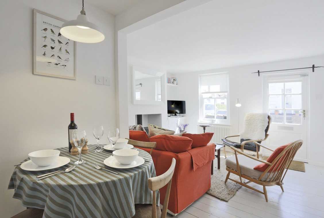 Built in 1795, Apple Cottage is Grade II listed. Just a 10-minute walk to Southwold beach, this two-hundred-year-old cottage has been stylishly renovated, with a contemporary grey and white colour palette. The ground floor comprises an open plan living area including a Swedish wood burning stove, a dining area, a well-equipped galley kitchen, and a separate adjoining shower room. Whilst upstairs, there are two double bedrooms and an ensuite with roll-top bath. This quaint cottage is cleverly designed and well equipped with all you need for a self-catering break by the Suffolk coast. This charming cottage boasts fantastic positioning within the town of Southwold, being on the renowned independent high street, meaning you can shop with ease but also reach the beach within a 10 minute walk.