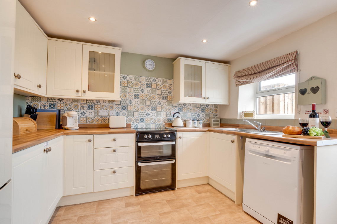 * Utilities: Double electric oven and grill, gas hob, dishwasher, fridge with icebox, microwave.