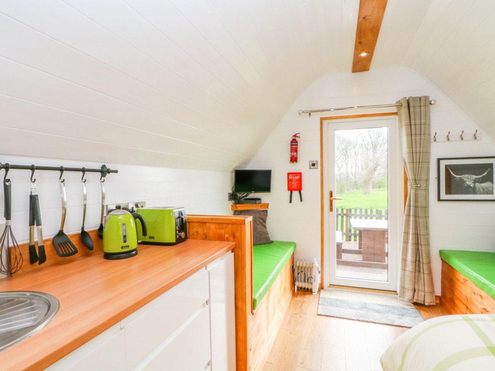 Holmes Chapel 4.4 miles. Situated on Welltrough Hall Farm, overlooking a 270-acre working farmland with superb views across the Cheshire countryside, is Badger Pod. This charming shepherd's hut, near the village of Holmes Chapel, offers cosy accommodation for a couple looking to explore an interesting region of Cheshire. Enveloped by the peace and quiet of the area, you can kick back, relax and truly make the most of this romantic getaway. You have a double sofa bed and TV, as well as a handy kitchenette to store the essentials and make a lovely cup of tea for your other half to enjoy fresh on the decking on a crisp morning. There is also an en-suite shower room conveniently waking you up each morning. On a balmy afternoon, sit out on the decking and soak up the greenery in the hot tub, with nothing to disturb you other that the sounds of birds in the trees. You also have a gas stove for alfresco dining and later you can stroll across the fields to the village pub for a refreshing drink. Your four-legged friends haven't been forgotten either, there is a three-kilometre grass track around the farm, a public footpath and plenty of other walking trails, along with a warm doggy shower to wash muddy paws on the return journey. This central position in Cheshire means you are within easy reach of the cities of Chester, Manchester and Liverpool, hosting an array of attractions and activities for all tastes. Nearby however, you have the Arley Hall Estate for pleasant walks around flourishing gardens, magnificent rooms to explore inside and a history to uncover. You can also pay a visit to Tatton Park, the lovely market town of Knutsford and on the doorstep is the Jodrell Bank Discovery Centre and observatory. Thrill-seekers can also enjoy a day at Alton Towers or the Oulton Park motor racing circuit, both easily reached by car. Bring your loved one to share a memorable holiday in this countryside getaway. All one level. Open-plan living room with kitchenette, Double bed with en-suite shower basin and WC. Amenities for Rental Electric heating Microwave, fridge, TV, WiFi Hot tub.Fuel and power inc. in rent Bed linen and towels inc. in rent Ample off-road parking Enclosed decking area with furniture and gas stove One well-behaved dog welcome Sorry, no children accepted (over 18's only) and no smoking in the pod Shop 4.4 miles, pub 0.6 miles.