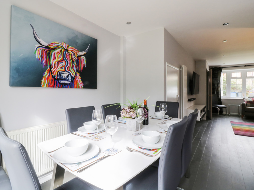 Situated in Central Windsor in a residential corner, 0.6 miles from the town centre and the grand Windsor Castle, is Balmoral Gardens. This charming abode is well-suited to families and friends looking for a varied holiday in an interesting part of Berkshire. Step into the property and head into the lounge to make yourself comfortable in front of the TV, before cooking up a storm in the well-equipped kitchen and getting everyone together around the dining table. Upstairs, the master bedroom offers a king-size double bed and a tiled en-suite shower room, handy for those early mornings getting ready for the day ahead. There are also two twin bedrooms, one with smaller 2'6" slimline beds, all bright and airy with ample storage space, while the family bathroom is perfect for soaking your muscles in the tub after a long day of walking and exploring the local area. Throw open the patio doors from the living room to the enclosed garden at the rear and make the most of a sunny afternoon, with a refreshing drink in hand and the aroma of a sizzling barbecue filling the air. You can relax on the patio area while you watch the kids play with the dog on the lawn and later head into the town to find a selection of restaurants catering to a variety of tastes. There are also a number of attractions awaiting your arrival, such as Windsor Castle and the Long Walk taking you on a beautiful stroll towards Snow Hill, where you will find an equestrian statue of George III at its summit. Take the kids on an adventure to Legoland or Thorpe Park and enjoy the rides. Just a train ride away is the city of London, where you can enjoy a fabulous day seeing the sights, with the London Eye, Houses of Parliament, Tower of London and so much more to entertain the whole family. This is a superb getaway to choose for you next UK holiday. Three bedrooms: 1 x king-size double with en-suite shower, basin and WC, 1 x twin, 1 x twin with 2'6" beds. Bathroom with bath, shower over, basin and WC. Open-plan living room with kitchen, dining area and sitting area. Amenities for Rental Gas central heating Electric oven, induction hob, microwave, fridge, freezer, dishwasher, washer/dryer TV and WiFi Fuel and power inc. in rent Bed linen and towels inc. in rent Roadside parking Enclosed garden with lawn, patio and BBQ area One well-behaved dog welcome Sorry, no smoking Shop 0.4 miles, pub 0.4 miles, town centre 0.6 miles Note: The slimline single beds may only be suitable for smaller adults and children.