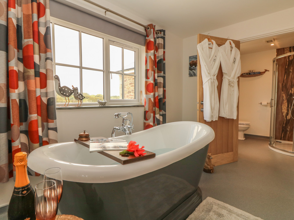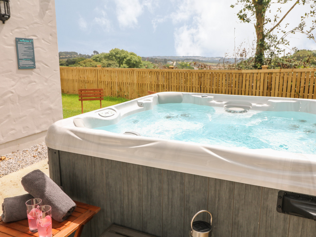 Resting on the outskirts of the pretty village of Chacewater, a few miles from the thriving town of Truro, is this superb detached cottage nestled in the owners private gated estate. Bear Cottage is the perfect choice for a peaceful and indulgent countryside break to Cornwall - customers are even welcomed with a cream tea on arrival. Boasting a light and airy interior, this property has been thoughtfully designed to provide a hugely modern and well-presented rooms, giving you a taste of luxury for your romantic break. Entering the property, you will be greeted by a large open-plan living space, with a large reclining sofa, perfect for putting your feet up of an evening and catching up with your favourite shows, or enjoying a romantic film together. The kitchen has a wonderful setup, housing all the appliances you could possibly need to make your stay here an exceptional one, with a large dining table to enjoy your lovingly prepared home-cooked meal, whilst catching up with the day's events. Ideal for couples, this cottage provides one spacious super king-size bedroom with an elegant freestanding bath, plenty of storage space and access to a large bathroom with a walk-in shower. The bedroom also has patio doors leading out to an enclosed garden, boasting lawn and patio areas where you can sit out with a refreshing drink and delight in the country scenery surrounding, or take a dip in the generous sized hot tub, ideal for unwinding after a days exploring. Direct access from the garden leads to acres of fields which you are free to roam with your four legged friends. All ground floor. One bedroom: 1 x super king-size with freestanding bath. Bathroom with walk-in shower, basin and WC. Open-plan living room with a kitchen, dining area and sitting area with woodburning stove. Amenities for Rental Woodburning stove Electric oven and hob, microwave, toaster, kettle, fridge/freezer, dishwasher, washing machine, Nepresso machine with starter pack of coffee pods, TV and WiFi Bed linen and towels inc. in rent Fuel, power and starter pack for fire pit inc. in rent Cot and highchair available on request Two well-behaved dogs welcome, £40 per pet per week Dog welcome pack inc Bed linen and towels inc. in rent Ample off-road parking Front decking area with furniture and access to a lawned area Rear, enclosed lawned garden and patio area with furniture and hot tub Cream tea on arrival Sorry, no smoking Shop and pub 1.5 miles