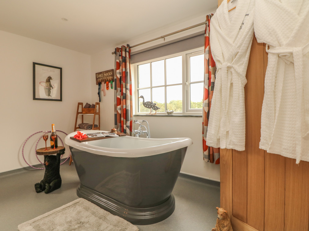 Set among other dog friendly cottages in a farm setting, the owners are like old friends within seconds. Nothing is too much trouble and everywhere is spotless. Lots of enclosed space for dogs to roam in and doggie treats included too. A really dog friendly home from home.