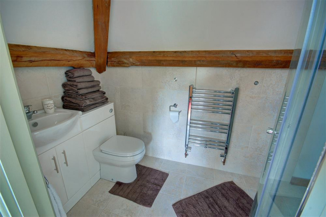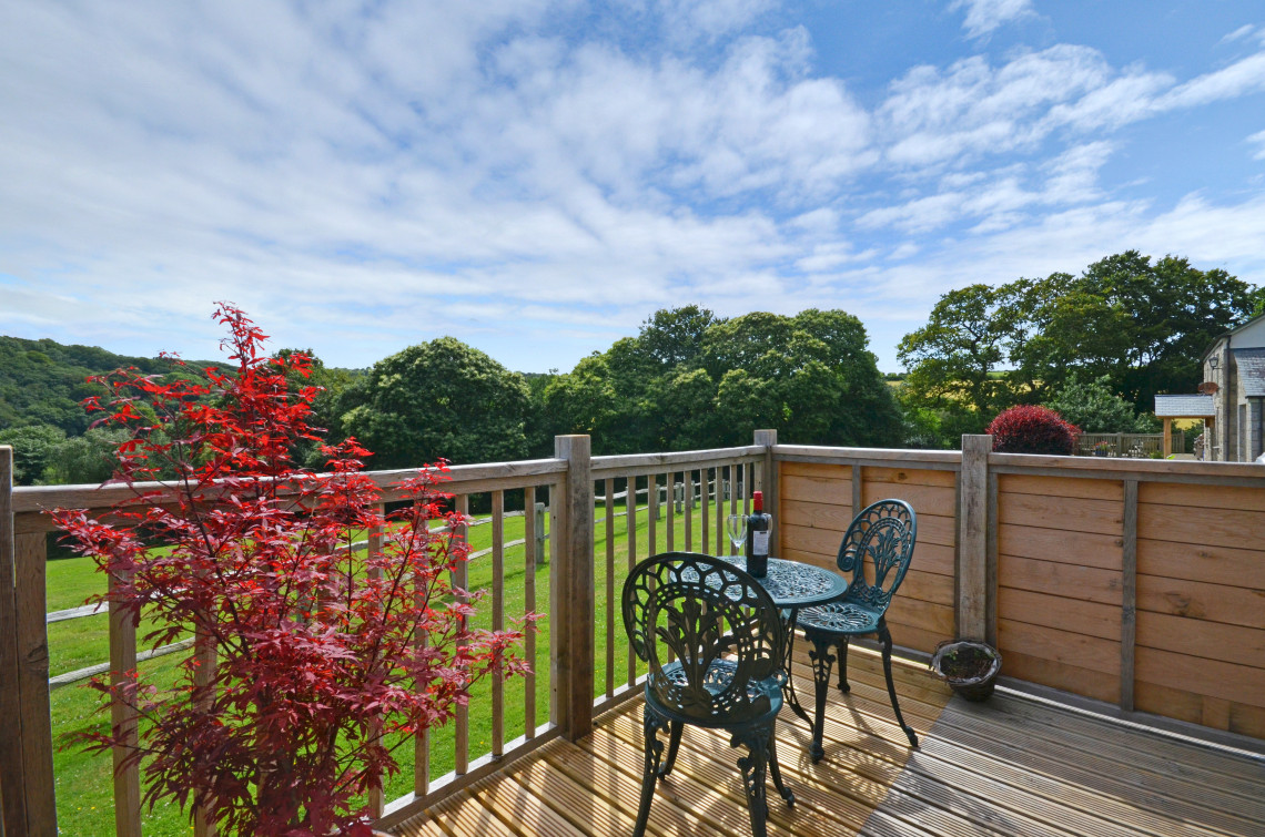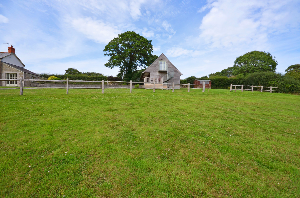 - Outdoors: Garden with decking and bistro table and chairs. Large lawn and field shared with owner.