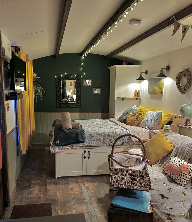 *Large homely & cosy secluded shepherd’s hut (24’ x 9’)