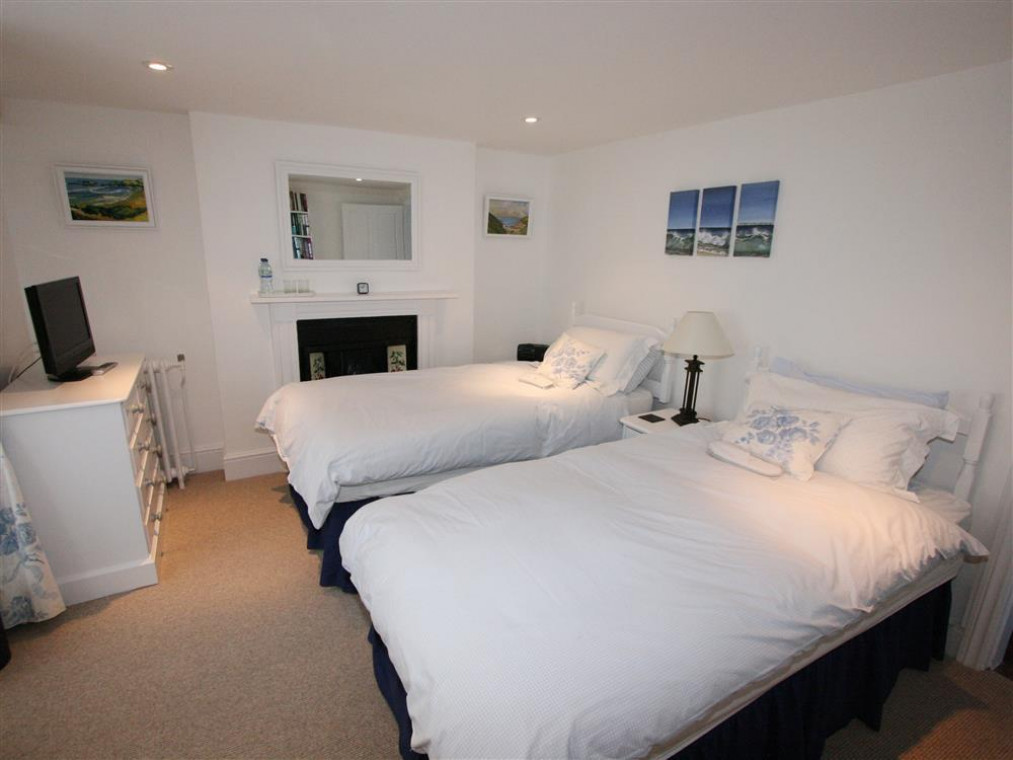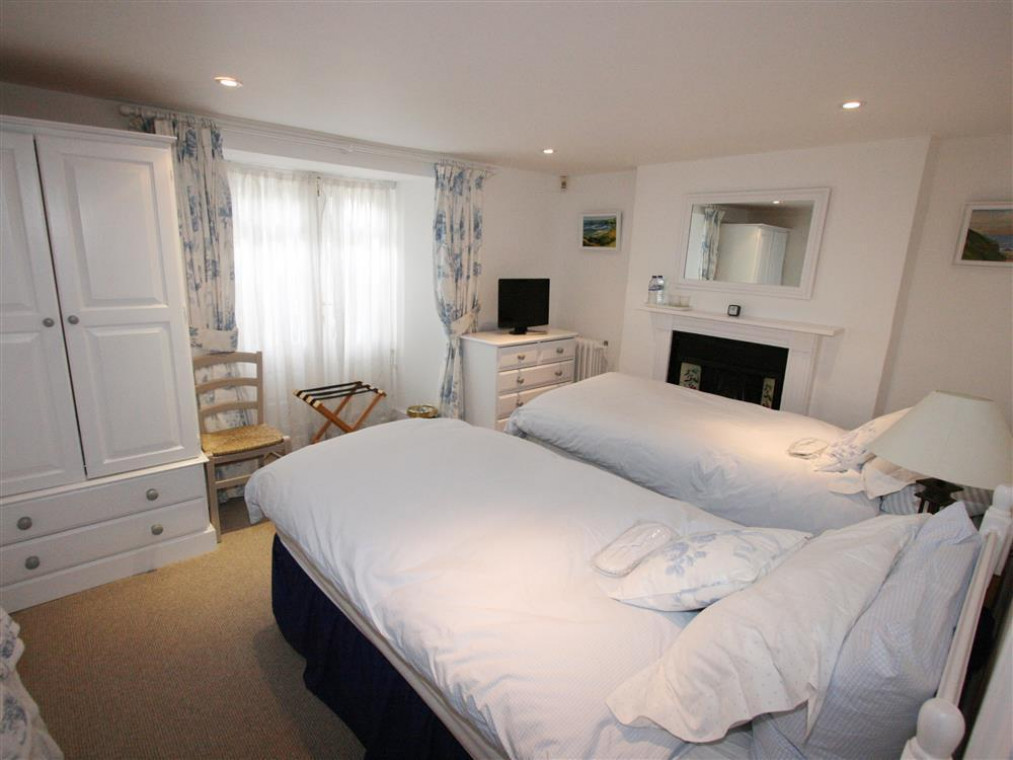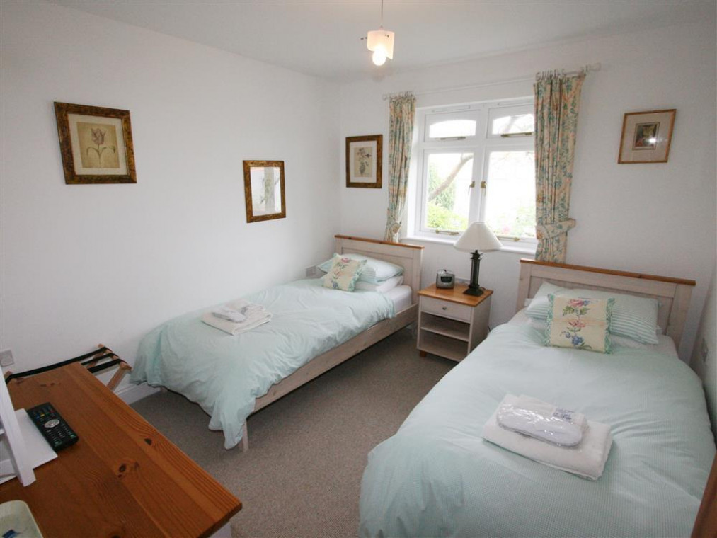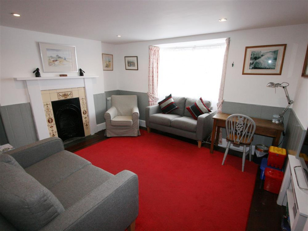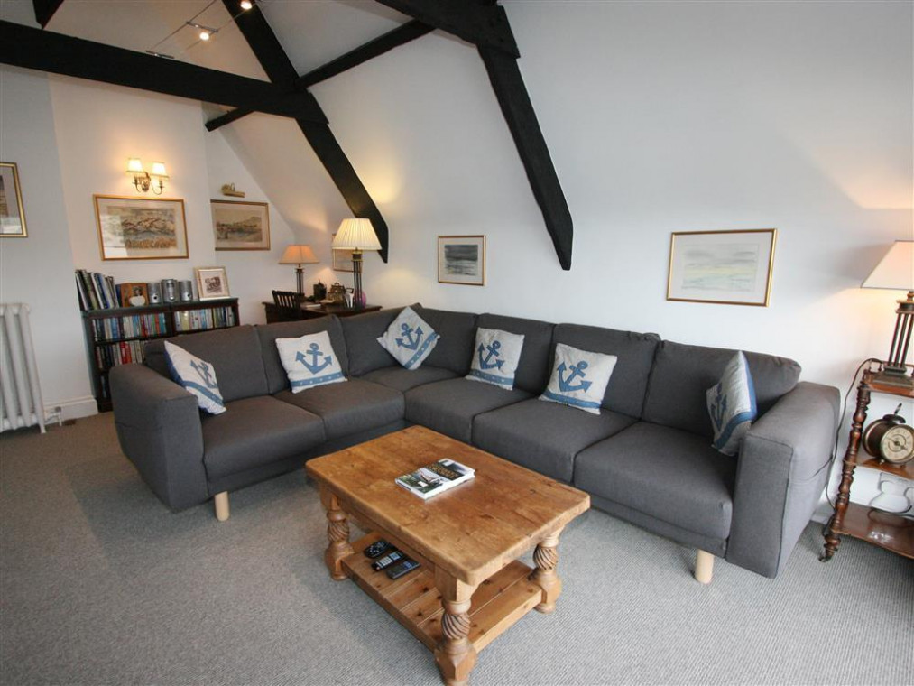 Upstairs the feature is the sitting room with bay window facing the beach and sea which seems almost in line with the water when the tides are at their highest. The master bedroom faces the garden and has a 5ft 6in king size bed and an en-suite bathroom WC with power shower over the roll-top bath and wash basin. There is also a comfortable twin bedroom facing the canal and beach.