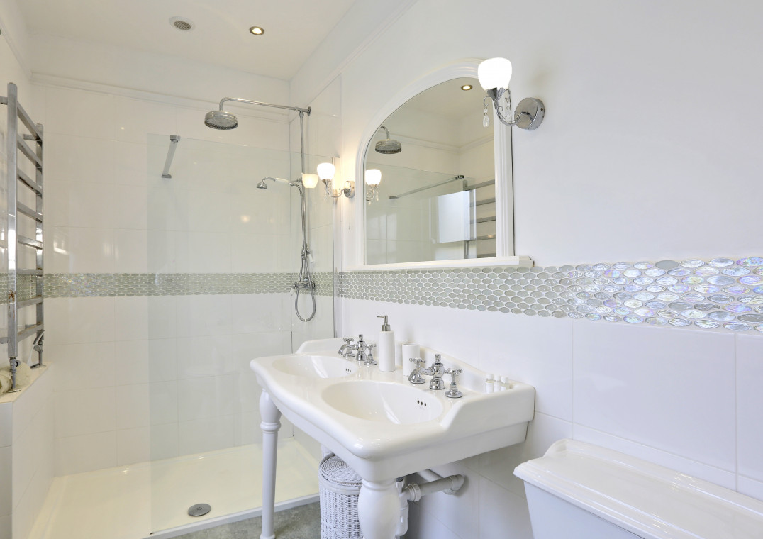 Bedroom 1: King bed with Ensuite Shower Room: Shower cubicle, double basin and WC
