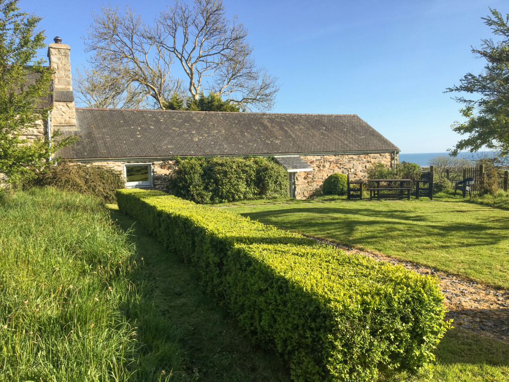 Bron Y Foel Bach is a lovely, welcoming and cosy holiday cottage on the Llyn Peninsula with stunning sea views. Surrounded by hills, stone walls, grazing sheep and peaceful countryside, it’s an idyllic setting. This family holiday cottage is situated between the towns of Porthmadog and Criccieth so there is a great choice of restaurants and pubs nearby, as well as walks, attractions and activities. Even though the living space is open plan to include the sitting, dining and kitchen areas, the sitting room is really cosy and ideal to relax in after a day of exploring. Open the doors and let the sun shine in, or light a fire in the winter and sink into the squishy sofas to warm yourself through. The local Oak beamed ceiling and underfloor heating add to the comfy feeling here. Behind the sitting space is a simple dining table with chairs for six. From here steps lead down into the quaint kitchen that’s equipped with a small dishwasher, microwave, fridge and electric cooker. The airing cupboard is where you will find the washing machine and tumble dryer with hanging space for the double bedroom. On the ground floor is a double bedroom which boasts views of the garden. There’s also a bathroom with loo, bath, shower, wash hand basin and heated towel rail. Upstairs is a balustrade balcony with lovely views along the coastline of the Llyn Peninsula to Criccieth Castle. The bedroom upstairs has three single beds. Outside is a paved area with table and chairs - the scent of roses and fuschias in the summer, as well as the stunning sea views, all add to the idyllic feel. Lawns and the orchard provide plenty of space for the children to play and adults to stroll. Bron y Foel Bach is a former barn that is now a holiday cottage that’s offered many a happy holiday for families in North Wales. You can drive up, park the car, and not leave if you want a relaxing break away from it all. However, jump in the car and you can be on some of the best beaches the Llyn Peninsula has to offer, great villages and towns with eateries and shops, as well as attractions and walks. A happy family holiday awaits you at this pretty holiday cottage. Two bedrooms: 1 x ground floor double, 1 x room with 3 single beds. 1 x ground floor bathroom with loo, bath, shower, wash hand basin and heated towel rail. Kitchen with small dishwasher, microwave, fridge, under counter freezer, electric cooker. Sitting room with underfloor heating, woodburning stove, TV. Amenities for Rental Underfloor heating, woodburning stove Washing machine, tumble dryer Bed linen and towels included Wifi. 1 dog welcome Off road parking Sea views Amenities approx 2 miles Note: Very rough track leading to house and two gates which must be closed at all times.