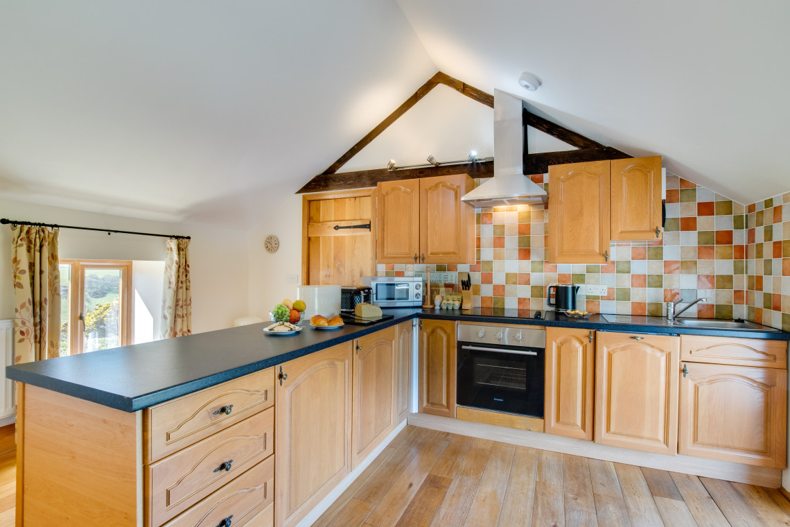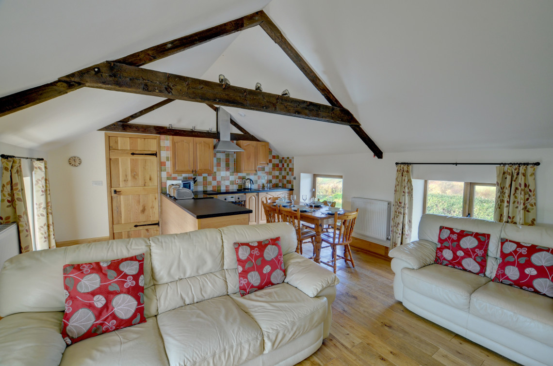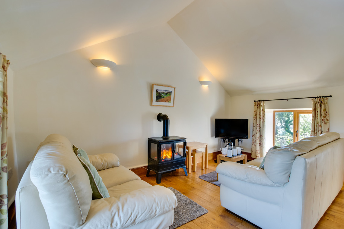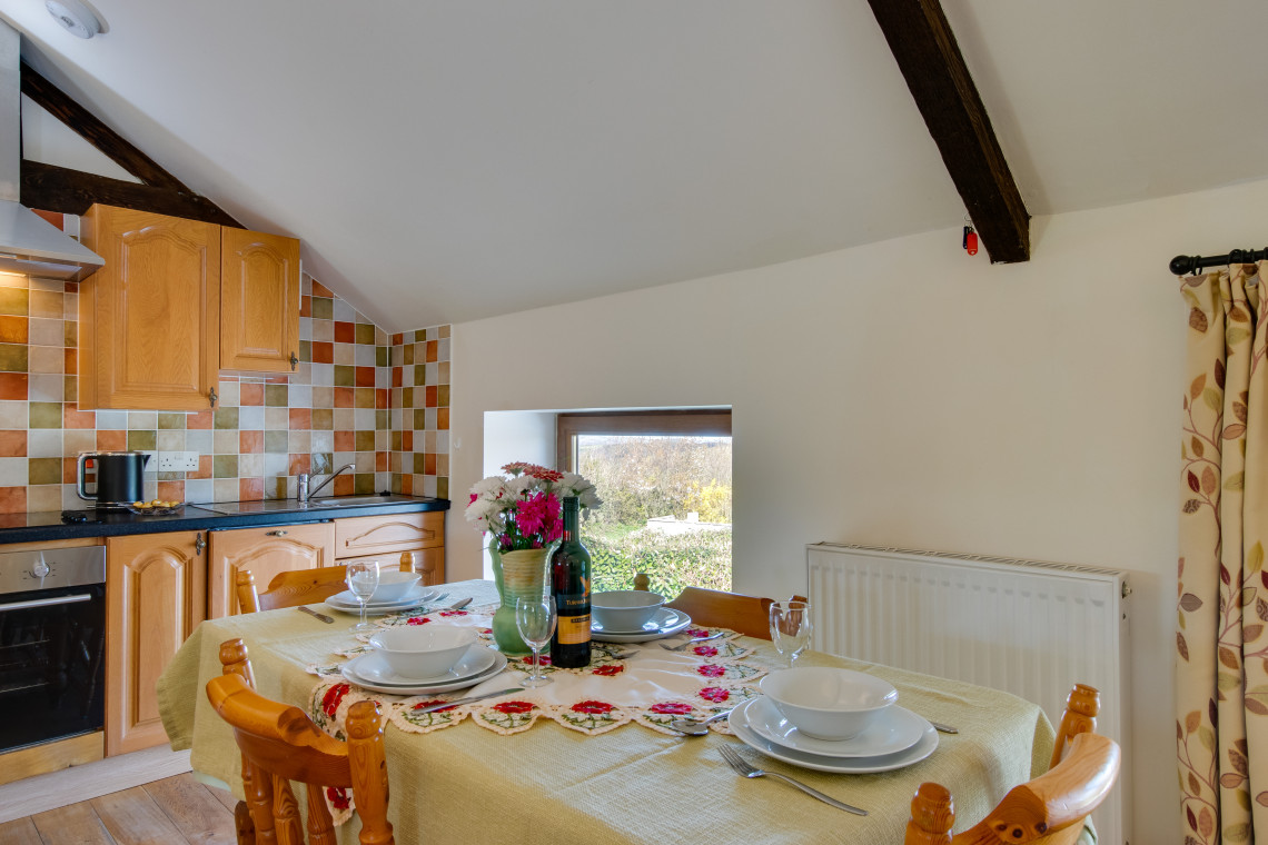 An attractive white-painted cottage, attached to the owners' home, in beautiful unspoilt countryside, 6 miles east of Aberystwyth. This former stable building has been converted into 'upside down' accommodation, to take advantage of the lovely views from the first floor living rooms. The cottage also benefits from an enclosed side and rear garden, beautifully maintained with mature fruit trees, shrubs and attractive flower borders. Lots of nearby attractions and amenities.