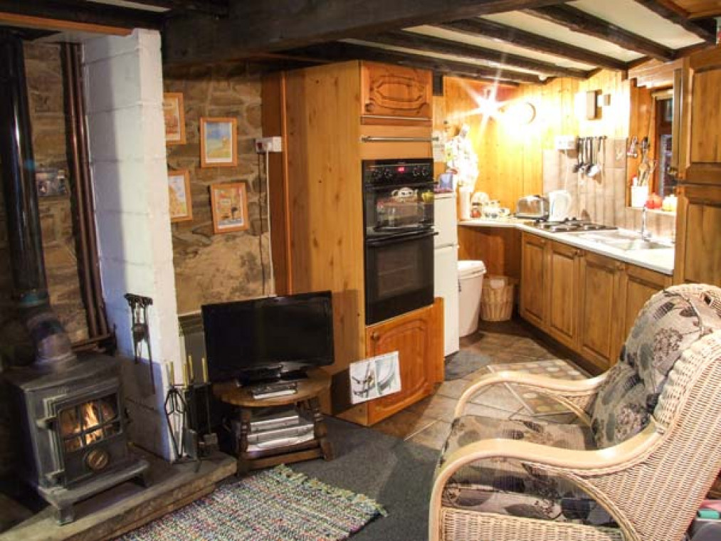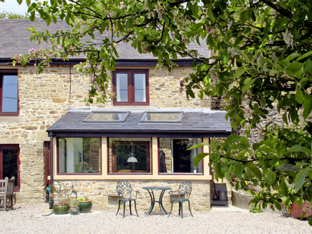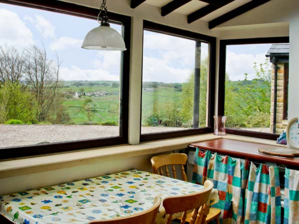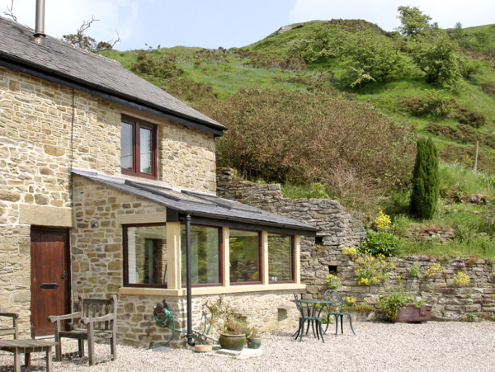 A delightful, stone-built secluded south-facing cottage nestling in a wonderful, elevated and peaceful position below Hucklow Edge, with spectacular views, and only 5 mins walk from Great Hucklow. The well-equipped very comfortable accommodation is approached by a private track. The owners live in the adjoining house and personally welcome visitors. A superb base for walking and touring in the Peak District National Park. One double bedroom with en-suite shower, basin and WC. Cosy living room with fitted kitchen and sitting area with woodburning stove. South-facing conservatory with utility area, dining area and wonderful views. Note: The first floor is reached by a very steep open staircase which makes the property unsuitable for the less able (and large suitcases). Amenities for Rental Central heating from woodburning stove in sitting room and electric room heaters Electric double oven and hob, microwave, fridge/freezer, washing machine, tumble dryer, dishwasher, TV, video, DVD player, WiFi, radio All fuel and power inc. in rent Bed linen and towels inc. in rent Ample off road parking Use of garden with wild flower meadow, pond, garden furniture and BBQ Sunny sitting area with bistro table Well-behaved pets welcome Sorry, no smoking Good food and real ale at the village pub, 5 minutes' walk away and several more good pubs nearby Full range of shops in Tideswell, 2 miles.