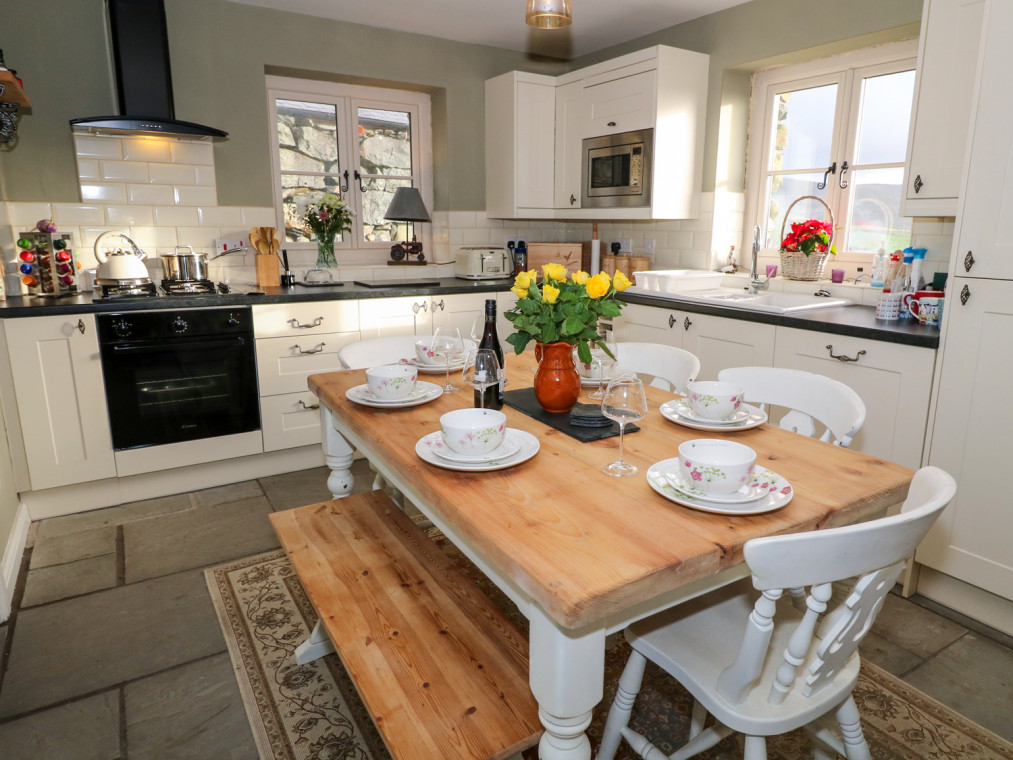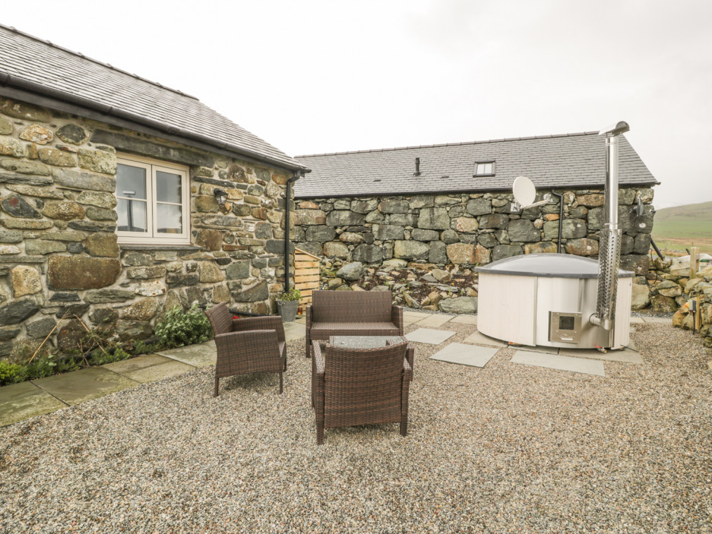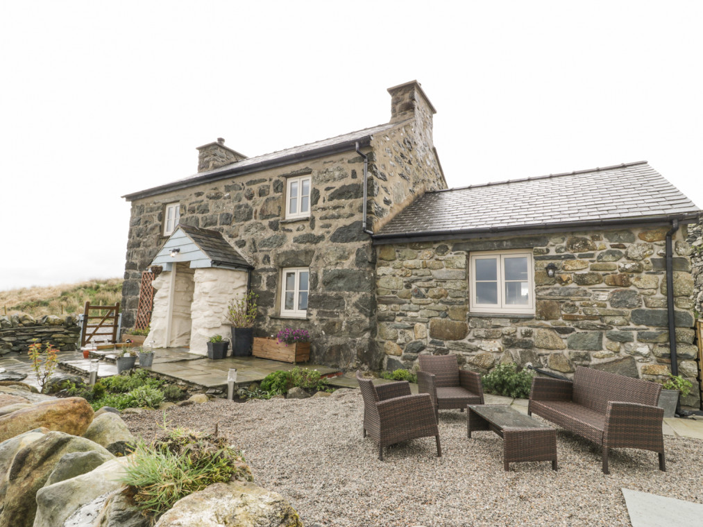 If you are looking for peace, tranquillity and breathtaking scenery, then look no further. This stone-built structure is a former traditional Welsh farmhouse which dates back to the 1750s. It is a hidden treasure set well off the beaten track at Cwm Pennant - often referred to as one of the most beautiful valleys in Wales, and is located within Snowdonia National Park. The property is engulfed by panoramic unspoilt views of Snowdonia National Park, the mountains of Snowdonia and distant views of the sea, with the Nantille Ridge prominent at the head of the valley and Moel Hebog to the east. This is fine walking and climbing territory, surrounded by natural beauty and nature - you'll be spoilt for choice The name 'Cwm Pennant' simply means ‘valley at the head of the stream’. Welsh poet Eifion Wyn wrote of the place “Why, Lord, did you make Cwm Pennant so beautiful/And the life of the old shepherd so short?” The property is some seven miles from the coastal resorts of Criccieth and Porthmadog, within the borders of Snowdonia National Park.On a clear day, you can even see as far as St Davids in South Wales - a haven for those who love being outdoors. A one-mile farmers track climbs up to the historic stone built cottage, where you and your loved ones can enjoy a serene location and cosy interior, bursting with character. The living room boasts two woodburning stoves, one of which is set within an exposed stone inglenook, adding warmth, a sense of charm and character to the sitting areas on a cold winter's night. The kitchen has a large dining table and is wonderfully appointed for all your cooking requirements. There is a ground floor cloakroom for convenience and the three bedrooms upstairs are served by a contemporary-style bathroom. Outside, you have your own private garden and a hot tub, allowing you to soak away any troubles and enjoy a relaxing end to a venturesome day. The nearest pub is The Goat, serving tasty homemade food, located approximately 1 mile along the A487 in Glandwyfach, with the nearest shop a few more miles away in Tremadog. Porthmadog is home to shops, eateries and the Ffestiniog Railway, where you can travel through Snowdonia, savouring a romantic journey via steam engine, to Blaenau Ffestiniog. Criccieth is also nearby, offering a superb coastal location, with fine restaurants, its imposing castle and beautiful sandy beaches. You can also pay a visit to the pretty, Italianate village of Portmeirion and explore the wonders of Snowdonia National Park, home to the tallest mountain in Wales. A fabulous opportunity not to be missed. Note: Property can be booked with Ref. 998075, together they can sleep eight guests. Three bedrooms: 2 x double, 1 x twin. Bathroom with bath, shower over, basin and WC, ground floor cloakroom. Kitchen/diner. Utility. Living/dining room with two woodburning stoves. Amenities for Rental Gas central heating and woodburning stoves Gas oven and hob, microwave, fridge/freezer, washing machine, dishwasher, tumble dryer TV with freeview, WiFi Fuel, power and starter pack for fire/stove inc. in rent Bed linen and towels inc. in rent Ample off-road parking Private garden with furniture and woodburning hot tub with all wood included Two well-behaved dogs welcome Sorry, no smoking Shop 6 miles, pub 4.9 miles Note: There is limited WiFi due to the location of the property Please Note: Hot Tub dependant on weather conditions Note: Property can be booked with Ref 998075, together they can sleep eight guests.