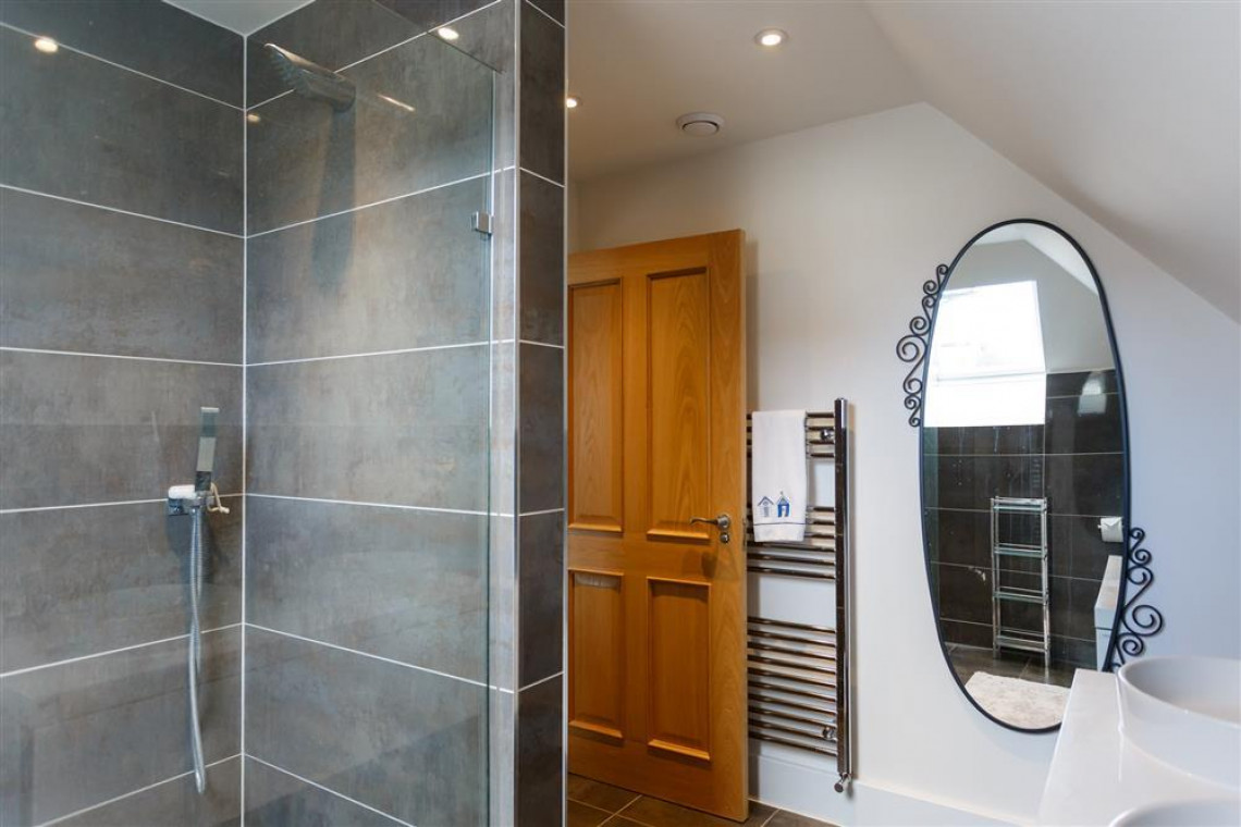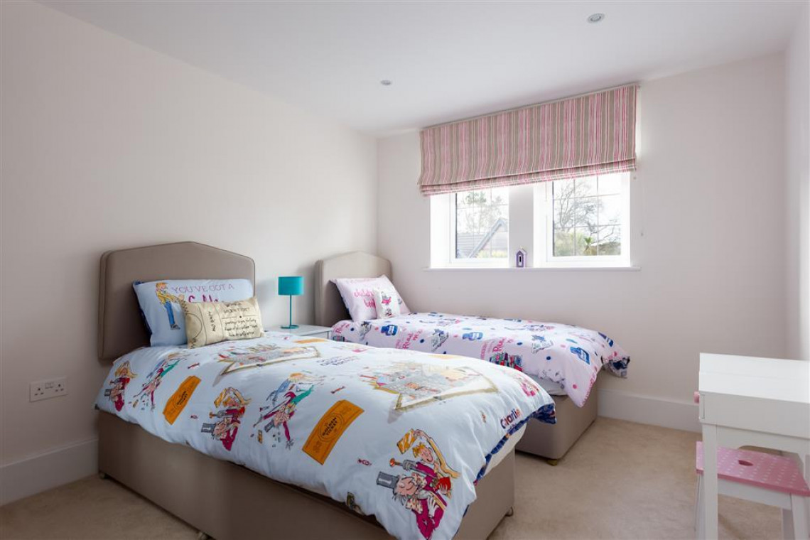To the rear of the first floor is a twin bedroom with fitted wardrobes. The family bathroom is spacious and has a shower over the bath. The master king size suite overlooks the front of the house and has a spacious ensuite shower room and twin sinks.