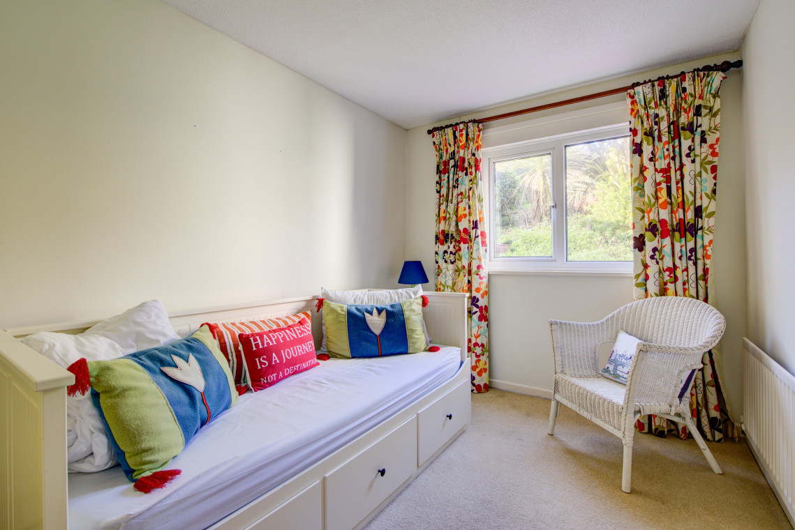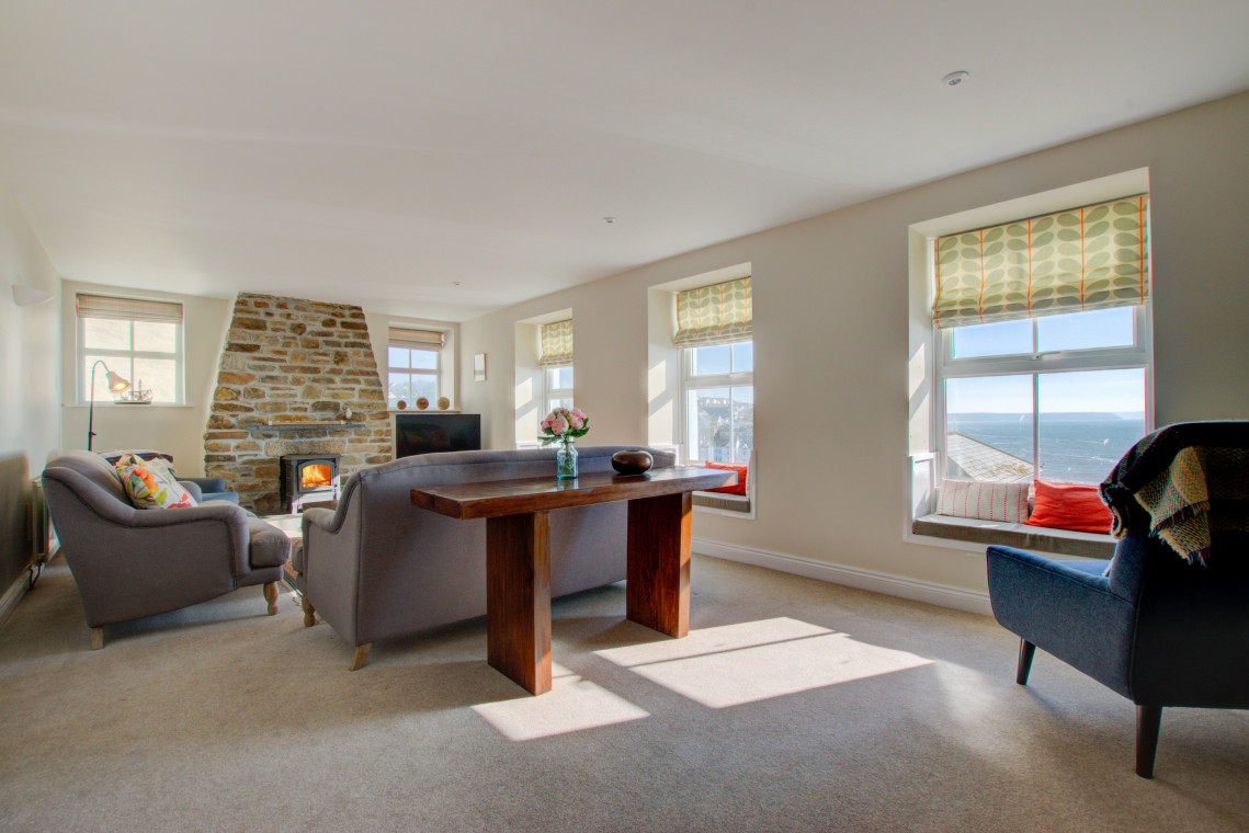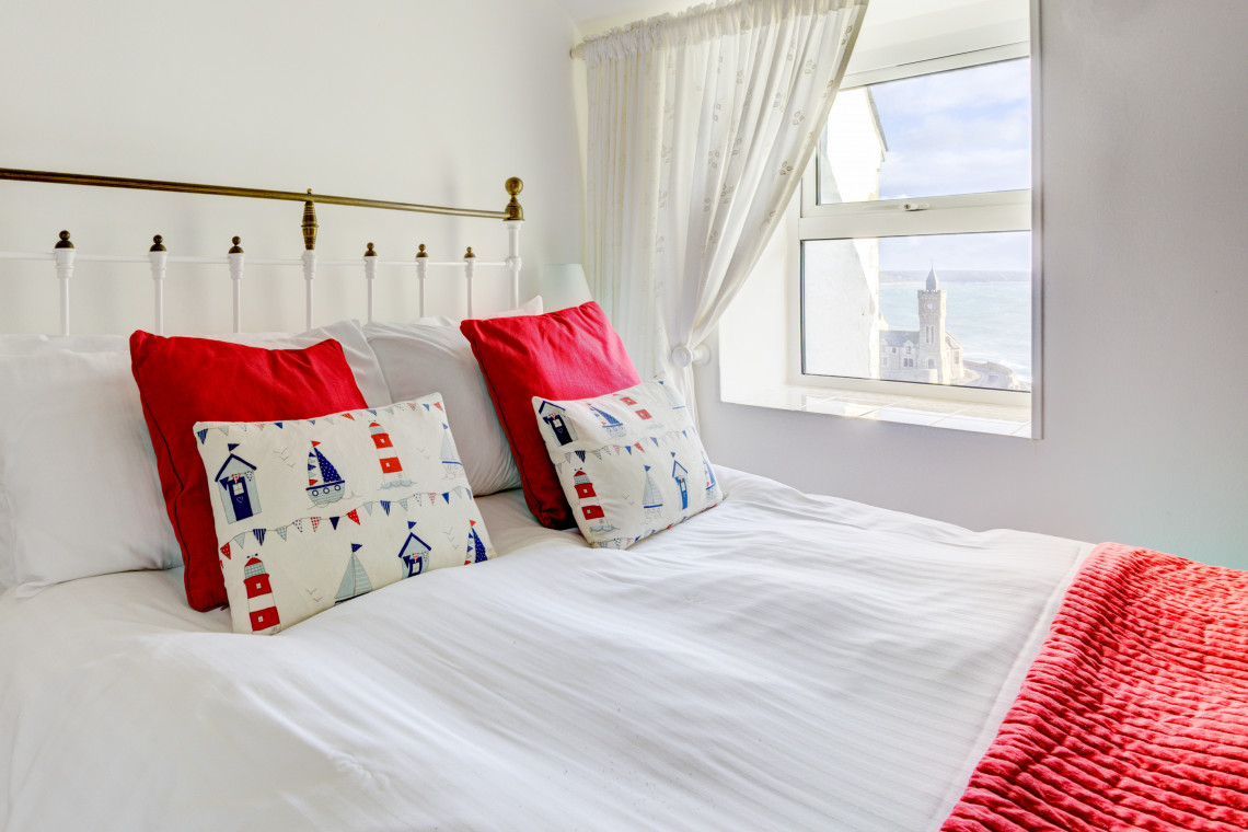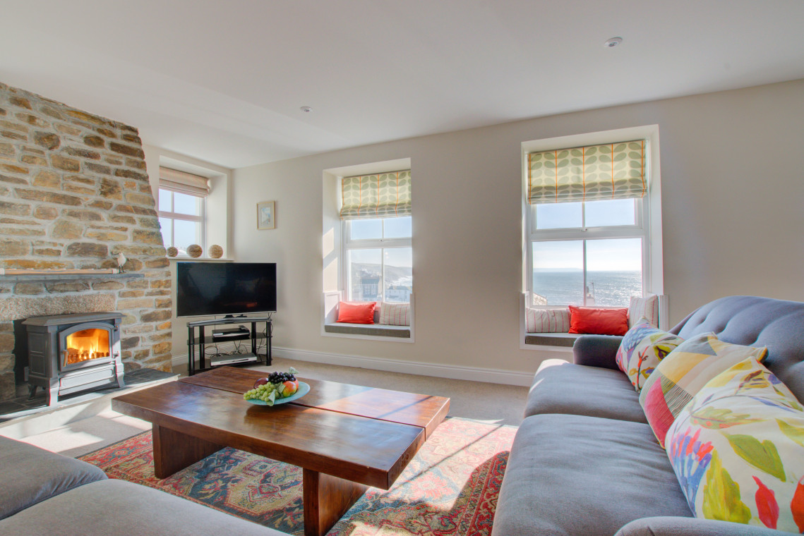 Chapel Downs is a grand cottage which overlooks Porthleven harbour towards the iconic Institute Clock Tower and out towards The Lizard and Mount’s Bay. Sleeping seven people and two dogs, the rooms are large enough for the whole group to get together and not feel on top of each other. The living room is on the first floor to make the most of the amazing sea views and there is an upper first floor to the back of the house which has the master bedroom and bathroom. Outside at the back of the cottage, there is a sloped garden, terraced areas with seating and a lovely large lawn.