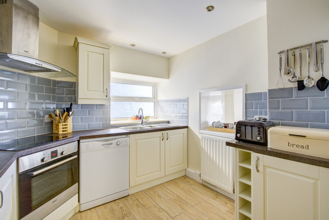 • Kitchen: Electric hob and cooker, fridge/freezer, dishwasher, microwave