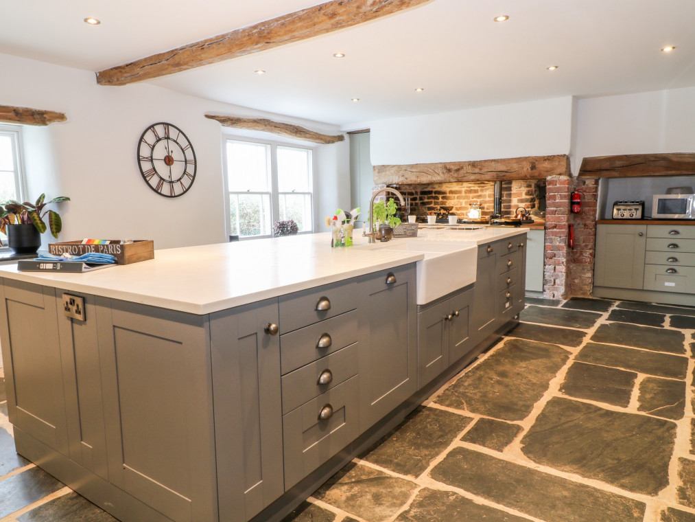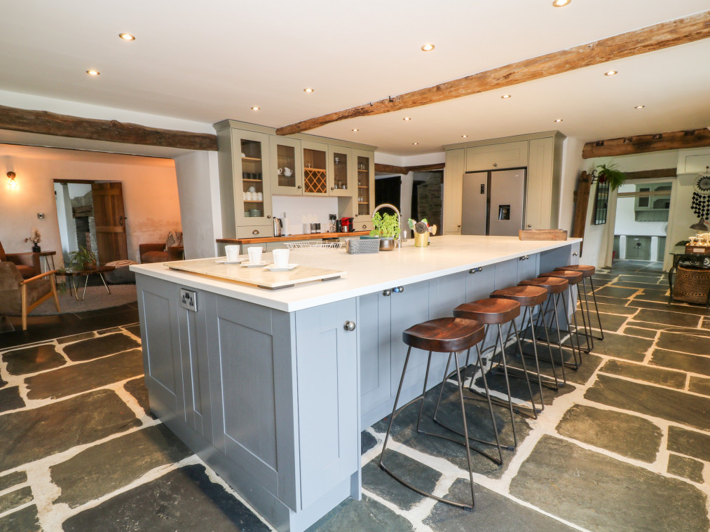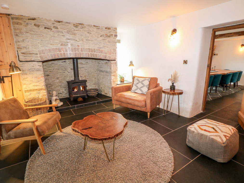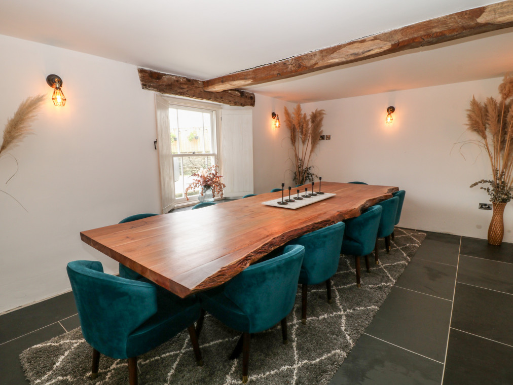 Barnstaple 5 miles. Sitting proudly in the picturesque borough of Chelfham, Chelfham Barton Manor is an arresting stone-built cottage surrounded by the magnificent landscapes of the North Devon coast and countryside. Renovated to a high standard, this characterful cottage exudes luxury and provides the ultimate base for a large family or group celebration, whatever the occasion! Grab a delicious bottle of wine from the impressive cooler and delight in drinks with friends at the breakfast bar, whilst the chef of the group takes to the striking AGA cooker and prepares a fantastic feast for the whole family to enjoy. Serve up at the grand yet rustic dining table, taking a seat on the chic teal velvet chairs and indulging in this lovingly-prepared meal as you make the most of quality time with your loved ones. Retire to the warm and inviting snug for a lovely digestif by the stove, or cross the gorgeous slate floors over to the sitting room where you can unwind with a captivating movie on the Smart TV as you keep your feet warm by the traditional woodburning stove. Children will relish in time spent playing in the games room, whilst the adults continue the evening out in the garden with a relaxing soak in the hot tub. The garden can also be found hosting a barbecue with an outdoor seating area, perfect for dinner alfresco on those warm summer evenings. Completing the ground floor is a handy utility room with a washing machine and tumble dryer, as well as a well-designed shower room where you can quickly freshen up following an action-packed adventure by the coast. Climb the beautiful oak staircase up to the first floor and discover six attractive bedrooms where you can lay your head to rest. The master bedroom has been decorated with calming cream tones and serene green accents, as well as benefiting from a roomy king-size bed and an en-suite bathroom. Across the way lies a sophisticated double hosting its very own en-suite shower room, whilst two additional king-size bedrooms and two twins are served by a bright and airy shower room. The interior of the cottage is then finished with a tranquil family bathroom featuring an eye-catching roll-top bath and a spacious walk-in shower, so that you can choose how to best prepare for the day ahead. Set about on a scenic stroll down to the town of Barnstaple and see the Clock Tower that overlooks the River Taw, before taking a tour of the Museum of Barnstaple & North Devon and crossing the iconic Long Bridge to the bustling retail park. Just a pleasant drive away lies the popular Exmoor Zoo, and the National Trust owned Arlington Court & Carriage Museum, an elegant dwelling with Victorian gardens dating back to the 18th century. Hop in the car and head for Braunton and Croyde, home to stunning sandy beaches and the jagged cliff tops of Baggy Point, providing unrivalled views of the Lundy Heritage Coast and Sea. Learn to catch a wave with the Croyde Surf Academy or spend the afternoon hiking the breath-taking South West Coast Path, stopping off at the colourful Ilfracombe Harbour for a tasty bite to eat along the way. Visit Watermouth Castle for a fun-filled day or step back in time at the Combe Martin Wildlife & Dinosaur Park, a firm favourite amongst many holidaymakers travelling with children. Explore the great outdoors in the Dunkery & Horner Wood National Nature Reserve and uncover remarkable sites such as Shoulsbury Castle and the Valley of Rocks. With so much adventure right at your fingertips, Chelfham Barton Manor is the ultimate choice for your next group getaway to Devon. Six bedrooms: 1 x king-size with en-suite bath, separate walk-in shower, basin, heated towel rail and WC, 1 x double with en-suite shower, basin, heated towel rail and WC, 2 x king-size (zip/link, can be 2' 6" twins upon request), 2 x twin. Bathroom with roll-top bath, separate walk-in shower, double basin, heated towel rail and WC. Shower room with walk-in shower, basin, heated towel rail and WC. Ground-floor shower room with walk-in shower, basin, heated towel rail and separate WC. Kitchen. Utility room. Dining room. Sitting room with woodburning stove. Snug with sofa bed and woodburning stove. Games room Amenities for Rental Oil central heating AGA cooker with electric hob, microwave, fridge/freezer, wine cooler, washing machine, tumble dryer, dishwasher, Smart TV, TV with Apple TV and DVD Player, WiFi Fuel and power inc. in rent Bed linen and towels inc. in rent Travel cot available upon request Off-road parking for five cars Enclosed garden with lawned area and a patio featuring barbecue, outdoor seating area and a hot tub Two well-behaved pets welcome Sorry, no smoking Shop 2.2 miles, pub 1.9 miles Note: Pets must be kept on the ground floor only Note: Check-in at 4:00pm, check-out at 10:00am