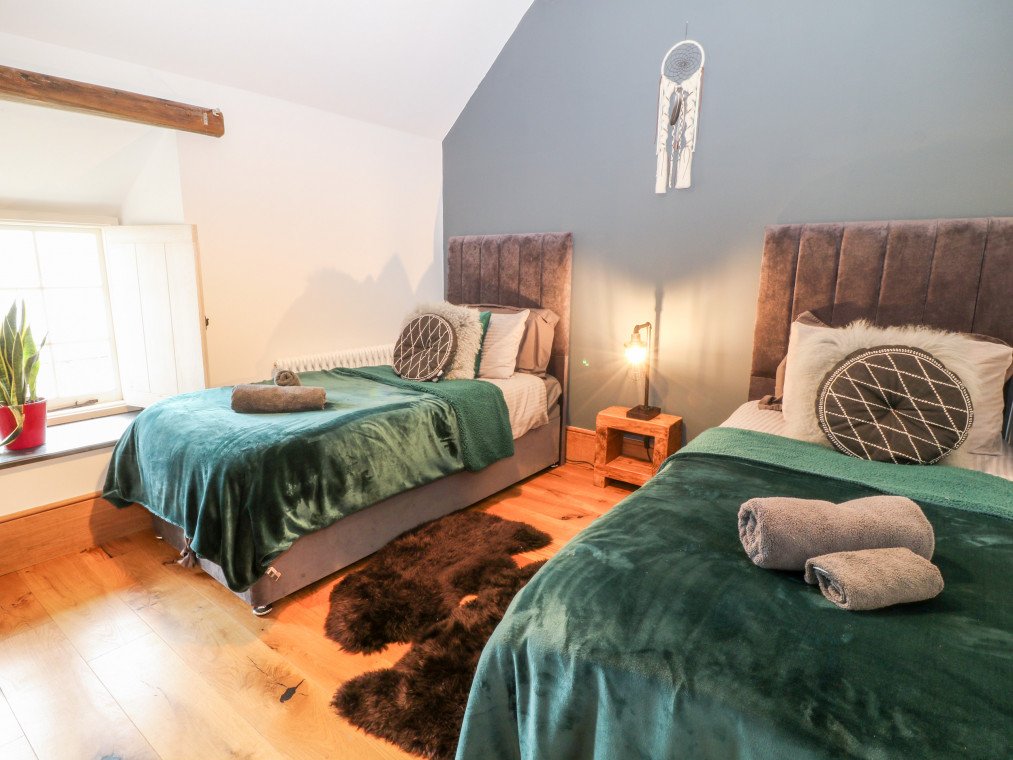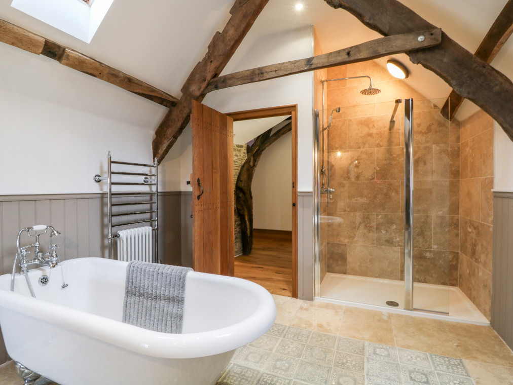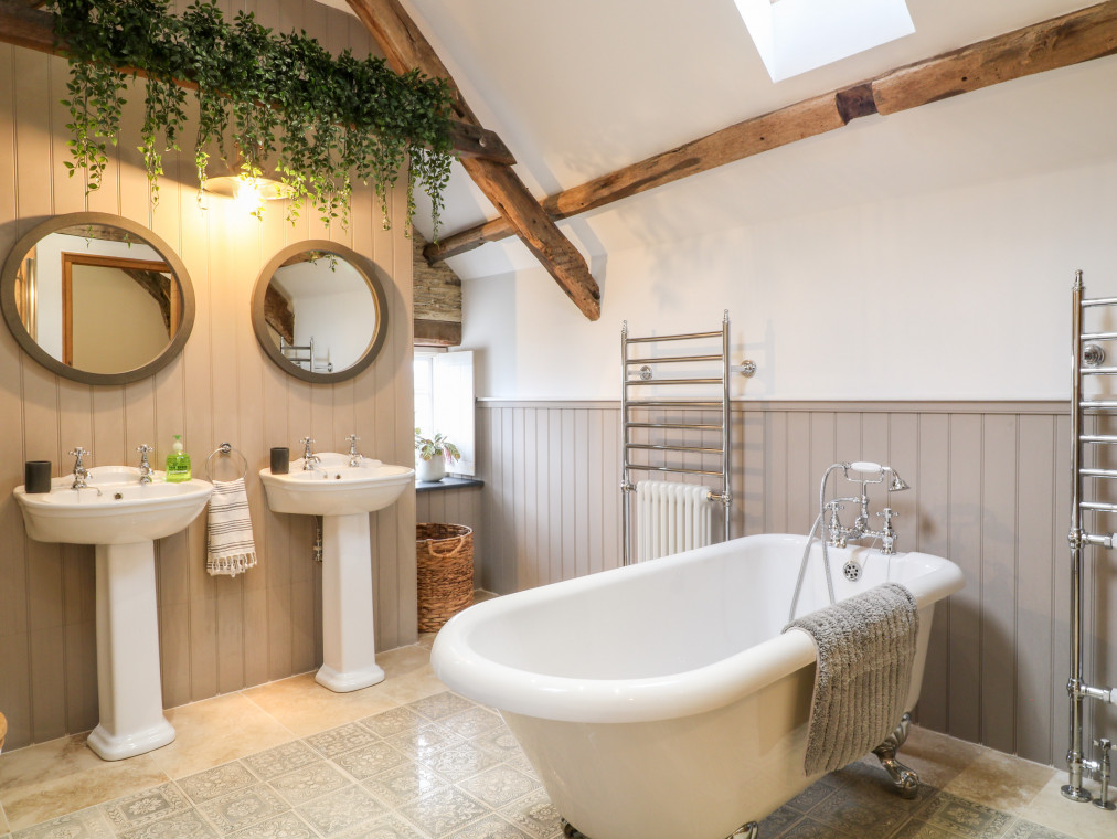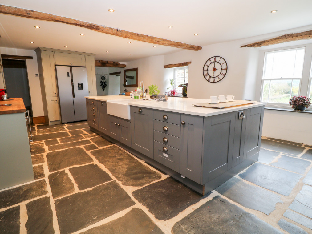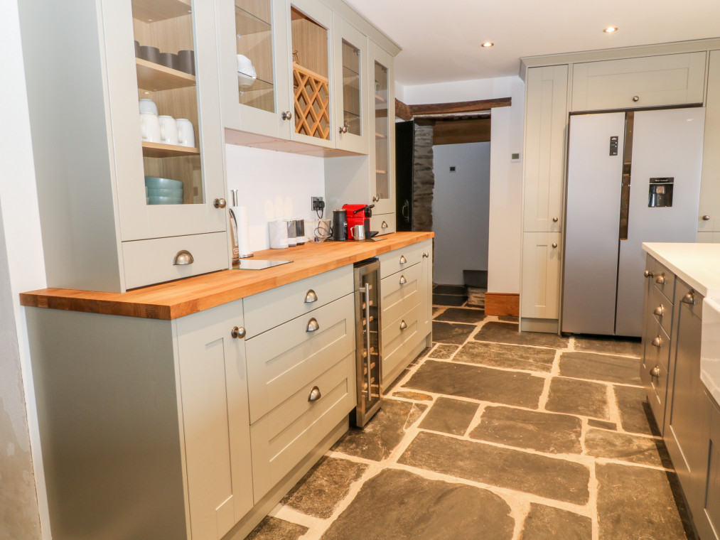 Barnstaple 5 miles. Sitting proudly in the picturesque borough of Chelfham, Chelfham Barton Manor is an arresting stone-built cottage surrounded by the magnificent landscapes of the North Devon coast and countryside. Renovated to a high standard, this characterful cottage exudes luxury and provides the ultimate base for a large family or group celebration, whatever the occasion! Grab a delicious bottle of wine from the impressive cooler and delight in drinks with friends at the breakfast bar, whilst the chef of the group takes to the striking AGA cooker and prepares a fantastic feast for the whole family to enjoy. Serve up at the grand yet rustic dining table, taking a seat on the chic teal velvet chairs and indulging in this lovingly-prepared meal as you make the most of quality time with your loved ones. Retire to the warm and inviting snug for a lovely digestif by the stove, or cross the gorgeous slate floors over to the sitting room where you can unwind with a captivating movie on the Smart TV as you keep your feet warm by the traditional woodburning stove. Children will relish in time spent playing in the games room, whilst the adults continue the evening out in the garden with a relaxing soak in the hot tub. The garden can also be found hosting a barbecue with an outdoor seating area, perfect for dinner alfresco on those warm summer evenings. Completing the ground floor is a handy utility room with a washing machine and tumble dryer, as well as a well-designed shower room where you can quickly freshen up following an action-packed adventure by the coast. Climb the beautiful oak staircase up to the first floor and discover six attractive bedrooms where you can lay your head to rest. The master bedroom has been decorated with calming cream tones and serene green accents, as well as benefiting from a roomy king-size bed and an en-suite bathroom. Across the way lies a sophisticated double hosting its very own en-suite shower room, whilst two additional king-size bedrooms and two twins are served by a bright and airy shower room. The interior of the cottage is then finished with a tranquil family bathroom featuring an eye-catching roll-top bath and a spacious walk-in shower, so that you can choose how to best prepare for the day ahead. Set about on a scenic stroll down to the town of Barnstaple and see the Clock Tower that overlooks the River Taw, before taking a tour of the Museum of Barnstaple & North Devon and crossing the iconic Long Bridge to the bustling retail park. Just a pleasant drive away lies the popular Exmoor Zoo, and the National Trust owned Arlington Court & Carriage Museum, an elegant dwelling with Victorian gardens dating back to the 18th century. Hop in the car and head for Braunton and Croyde, home to stunning sandy beaches and the jagged cliff tops of Baggy Point, providing unrivalled views of the Lundy Heritage Coast and Sea. Learn to catch a wave with the Croyde Surf Academy or spend the afternoon hiking the breath-taking South West Coast Path, stopping off at the colourful Ilfracombe Harbour for a tasty bite to eat along the way. Visit Watermouth Castle for a fun-filled day or step back in time at the Combe Martin Wildlife & Dinosaur Park, a firm favourite amongst many holidaymakers travelling with children. Explore the great outdoors in the Dunkery & Horner Wood National Nature Reserve and uncover remarkable sites such as Shoulsbury Castle and the Valley of Rocks. With so much adventure right at your fingertips, Chelfham Barton Manor is the ultimate choice for your next group getaway to Devon. Six bedrooms: 1 x king-size with en-suite bath, separate walk-in shower, basin, heated towel rail and WC, 1 x double with en-suite shower, basin, heated towel rail and WC, 2 x king-size (zip/link, can be 2' 6" twins upon request), 2 x twin. Bathroom with roll-top bath, separate walk-in shower, double basin, heated towel rail and WC. Shower room with walk-in shower, basin, heated towel rail and WC. Ground-floor shower room with walk-in shower, basin, heated towel rail and separate WC. Kitchen. Utility room. Dining room. Sitting room with woodburning stove. Snug with sofa bed and woodburning stove. Games room Amenities for Rental Oil central heating AGA cooker with electric hob, microwave, fridge/freezer, wine cooler, washing machine, tumble dryer, dishwasher, Smart TV, TV with Apple TV and DVD Player, WiFi Fuel and power inc. in rent Bed linen and towels inc. in rent Travel cot available upon request Off-road parking for five cars Enclosed garden with lawned area and a patio featuring barbecue, outdoor seating area and a hot tub Two well-behaved pets welcome Sorry, no smoking Shop 2.2 miles, pub 1.9 miles Note: Pets must be kept on the ground floor only Note: Check-in at 4:00pm, check-out at 10:00am