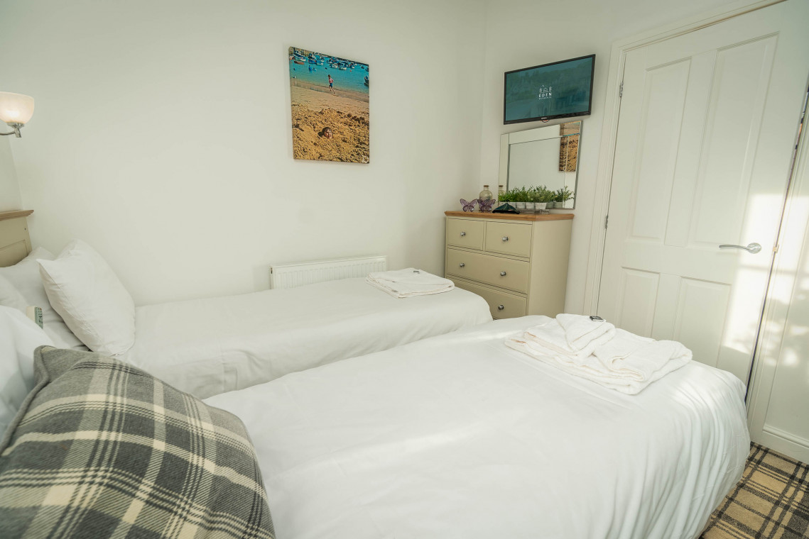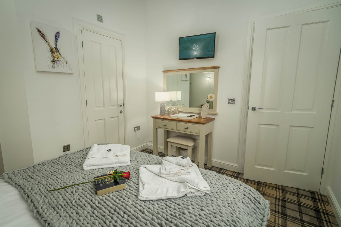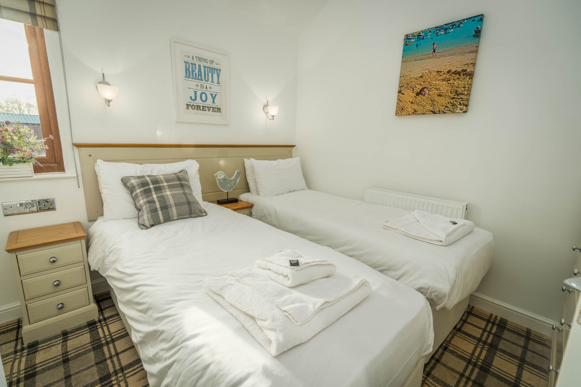 Two charmingly furnished bedrooms with king-sized beds are at the other end of the lodge and are both served by their shower ensuite.