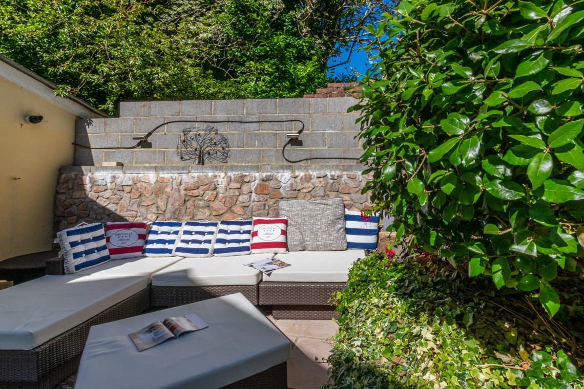 Garden Courtyard: there is a sunny garden with paved area for morning coffees or afternoon drinks. Area is equipped with rattan garden furniture sofa, chairs and table for al fresco dining.