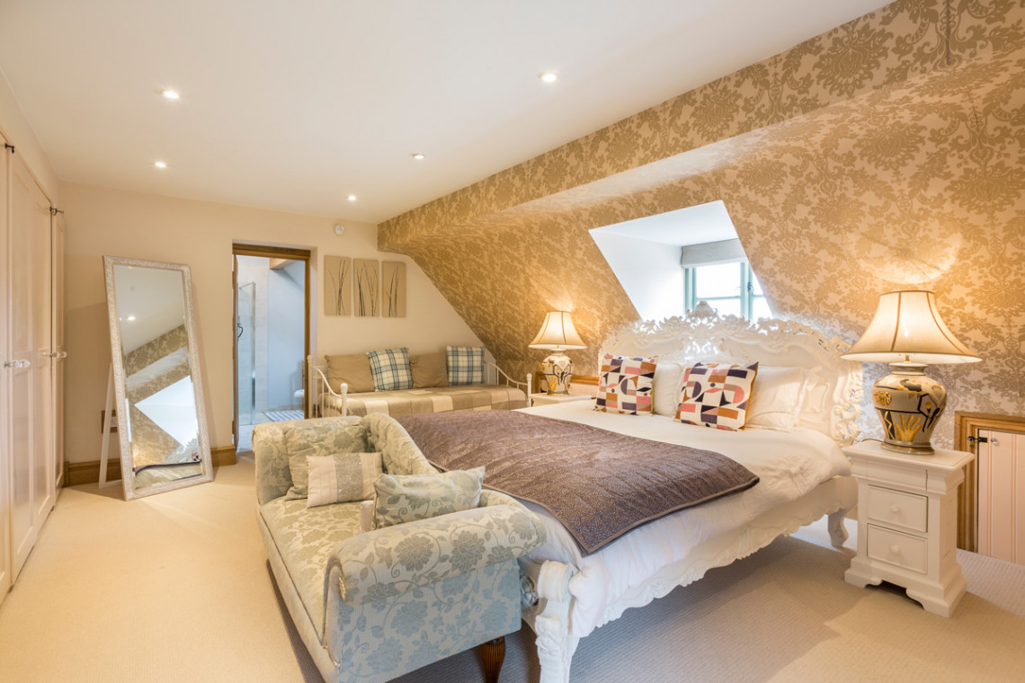 - Bedroom 5 with super-king bed, two additional single beds and en-suite bathroom