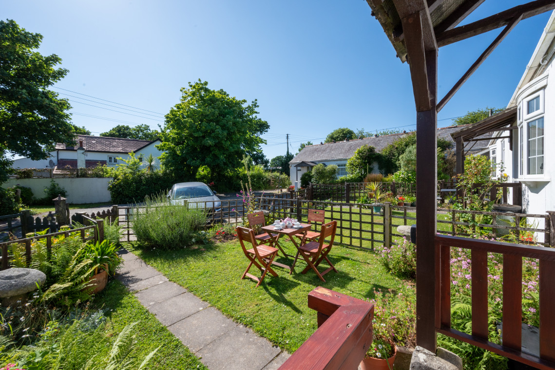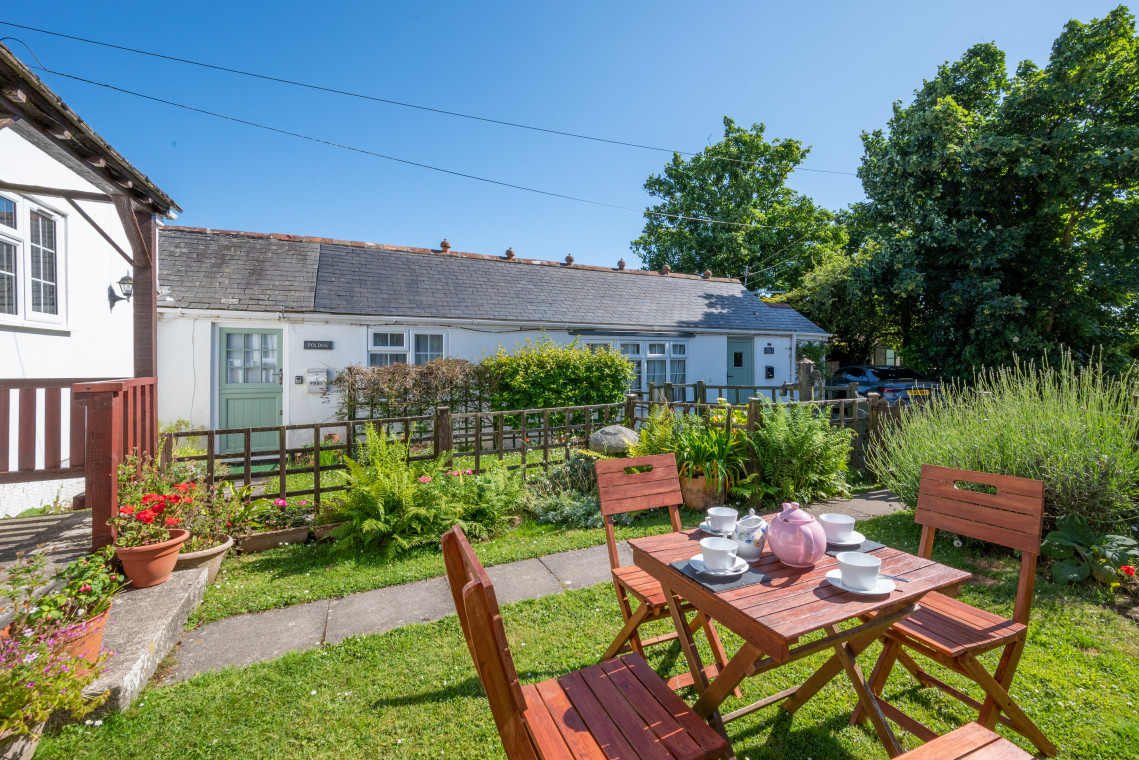 - Outside: Enclosed garden with small lawn and outdoor seating