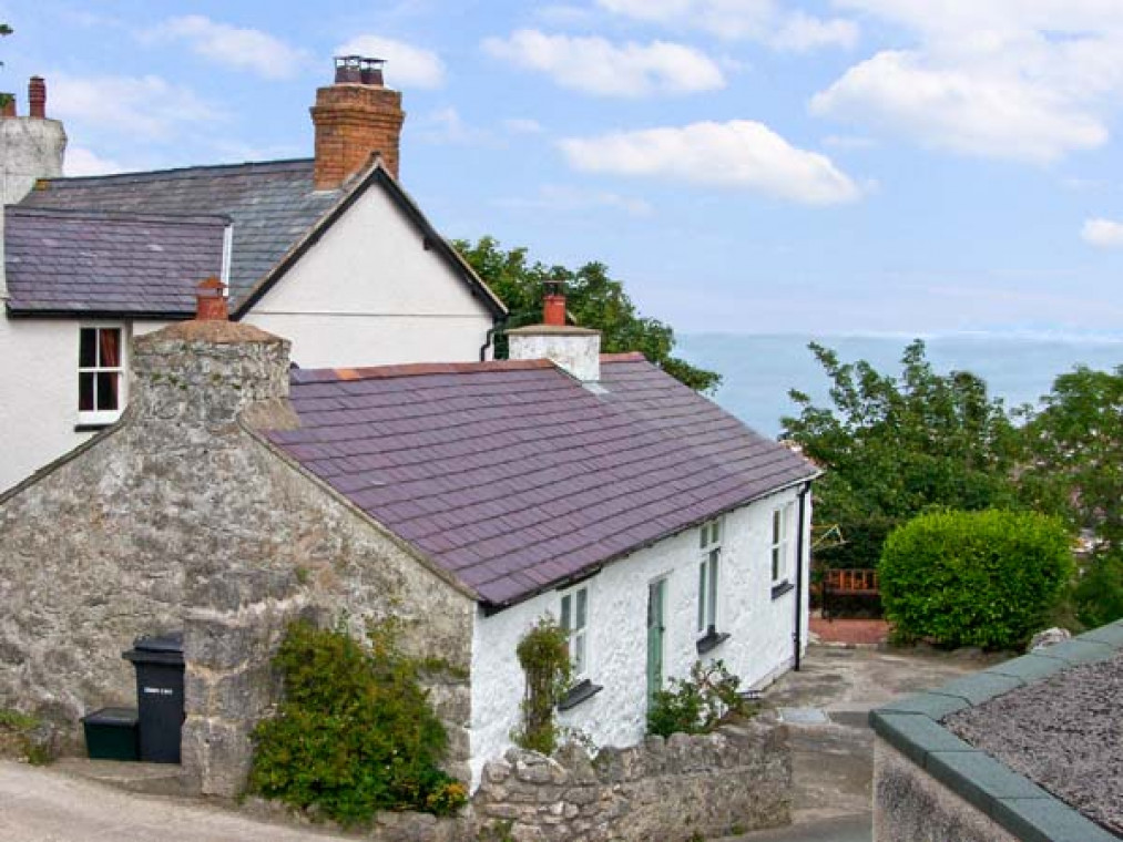 Llandudno 3 miles. A delightful, Grade II listed 18th century single-storey cottage, set in an elevated location on a quiet lane above Penrhynside, with stunning views over Penrhyn Bay. This Llandudno cottage is a superb retreat for romantic getaways and activity breaks in North Wales. Set next to the owners' home, this Llandudno cottage offers peace and tranquillity from the moment you arrive, with a spacious bedroom with exposed beams and a super king-size bed. The sitting room continues the traditional character of this Llandudno cottage, with exposed beams and stone wall, and a woodburner to keep you warm in the evening after a long walk along the coast. The fitted kitchen is well equipped and offers seating at a breakfast bar from which to enjoy the sea views. Outside there is a sun-soaked patio area overlooking the valley, and to the rear of this Llandudno cottage the owners have a secret oasis garden of half an acre, which they are happy to share with guests. Accessible hilltop walks can be enjoyed from the doorstep of this Llandudno cottage, with beautiful views from the top over Llandudno and Conwy bays, Snowdonia, Anglesey, and even the Isle of Man on a clear day. This is a superb, quiet Llandudno cottage getaway, yet only a short stroll to two CAMRA award-winning pubs in the centre of Penrhynside, making it an ideal location to enjoy any time of the year. All ground floor. One super king-size double bedroom. Shower room with shower, basin and WC. Fitted kitchen with breakfast bar. Sitting room with dining area and woodburner. Amenities for Rental Gas central heating with woodburner in sitting room Electric cooker, microwave, fridge, washer/dryer, TV, DVD, library of DVDs, WiFi Fuel, power and starter pack for woodburner inc. in rent Bed linen and towels inc. in rent Travel cot and highchair Off road parking for 1 small car in driveway next door to cottage Free parking for larger cars available in village Private patio with furniture and BBQ Shared garden Two dogs welcome Sorry, no smoking Shop 8 mins walk, pubs 3 mins walk Beach 0.5 mile Note: Low doorway between kitchen and lounge Note: Property is approx. 150m uphill from parking in village If guests utilise village parking, owner will arrange for luggage to be transported to/from cottage on arrival/departure Note: Although all ground floor, this property is not suitable for wheelchair users.