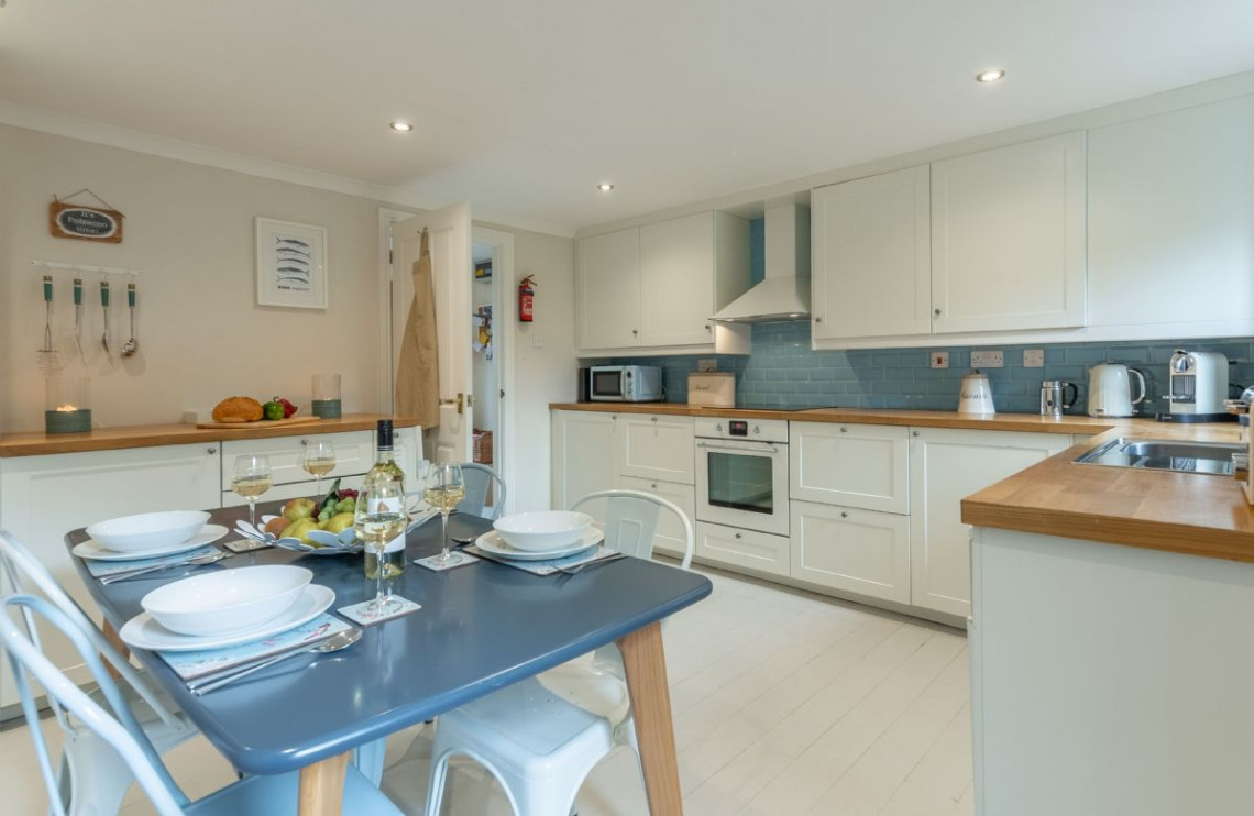 The property boasts a well thought out interior with wonderful local art adorning the walls and vintage furniture pieces nestled throughout the spacious living area and upstairs bedrooms. A large open-plan kitchen and dining area, with a pastel colour palette perfectly complementing the famous Cornish sunsets that flood light through the picture-postcard windows. The two upstairs bedrooms are tranquil and comfortable, with the master bedroom boasting a television with Amazon Fire for lazy Sunday mornings. The second double bedroom has twin beds, perfect for children sharing a room. This quirky and beautifully presented holiday home also offers a lovely large enclosed garden to the rear with a well-equipped patio area, garden furniture to relax in and charcoal barbecue.